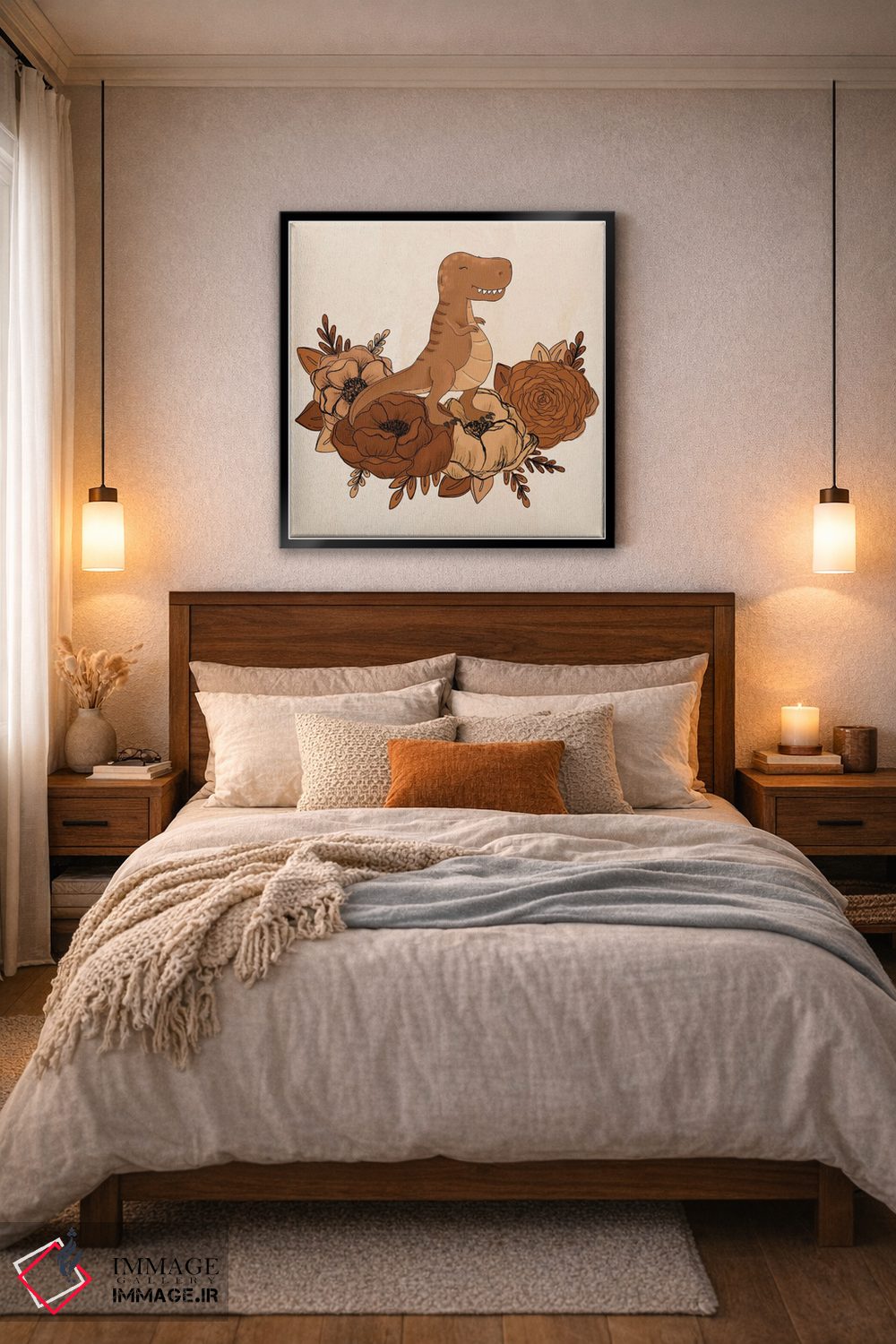 تابلو دکوراتیو گل های تی رکس اثر کیتی برایانت - نمای روبه‌رو روی دیوار