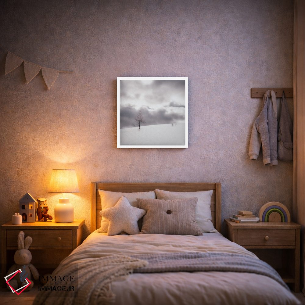 تابلو دکوراتیو ردپاها اثر کریم کارلا - نمای قاب‌دار سفید
