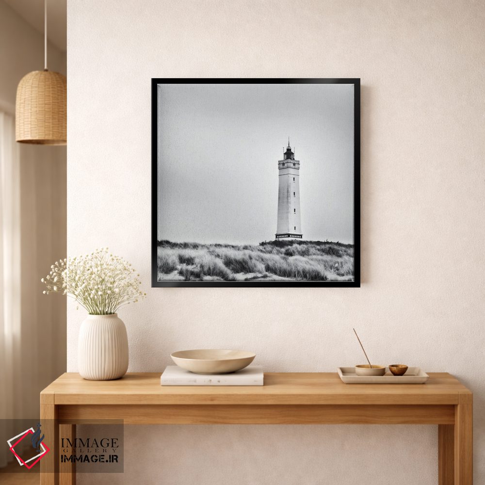 «فانوس دریایی سفید در دانمارک» اثرِ «کریم کارلا» در فضای عکاسی سیاهوسفید، روی نور و کنتراست تکیه میکند؛ موضوعِ این اثر برای دکورهای مینیمال عالی است.