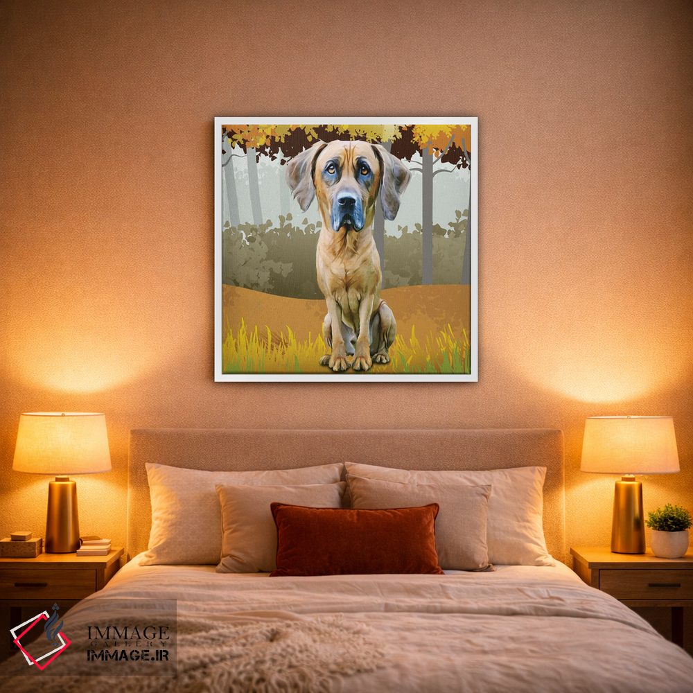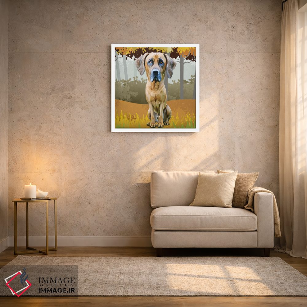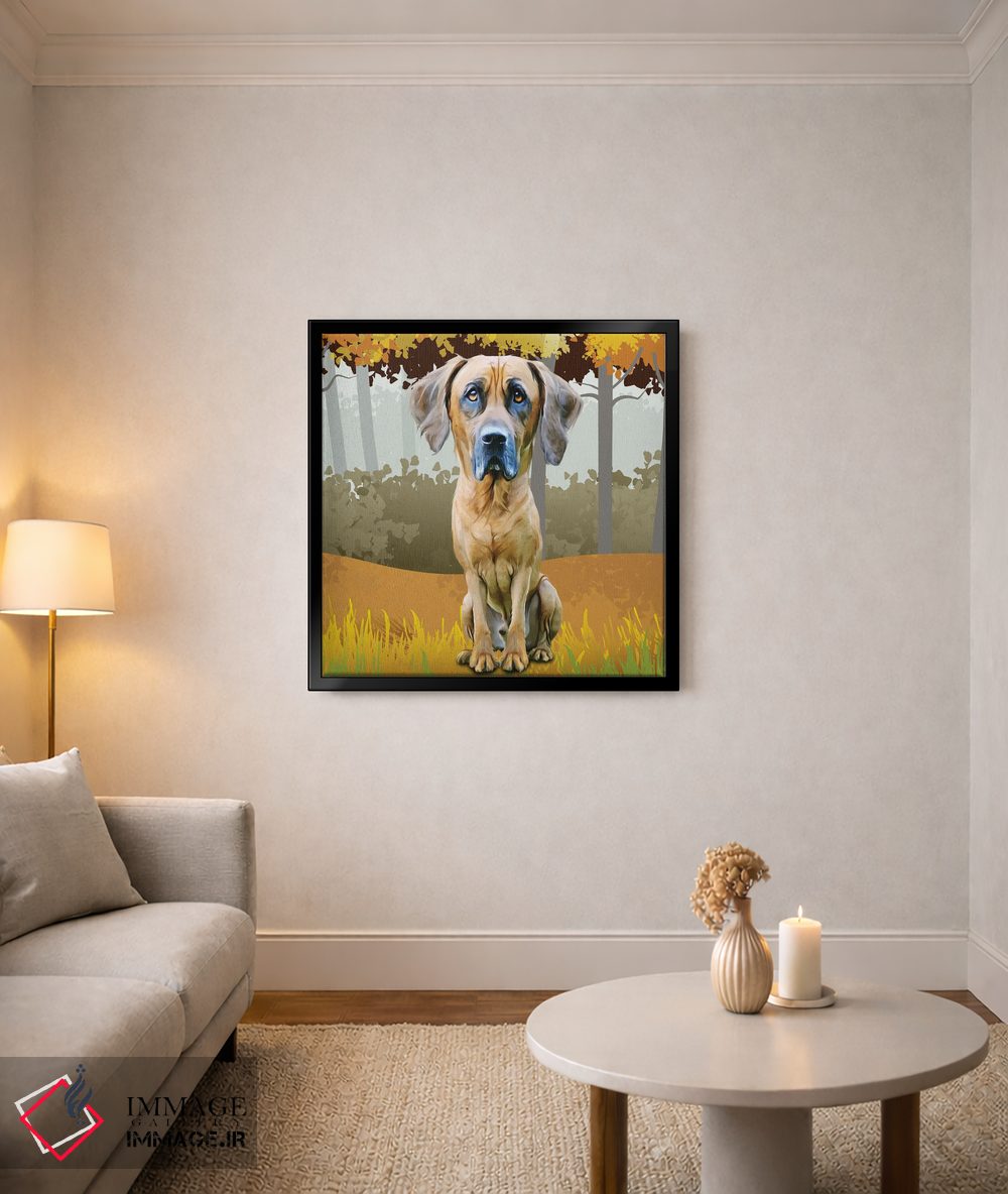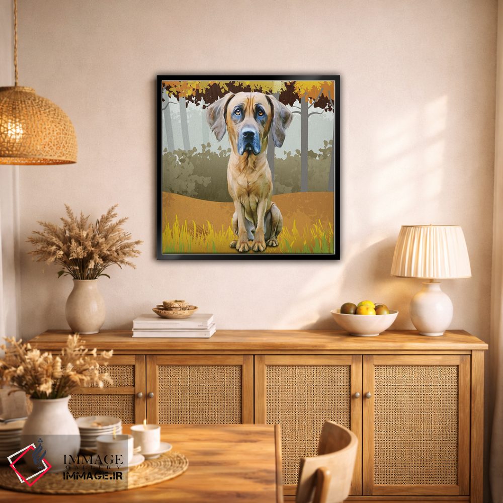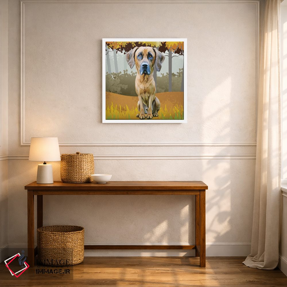 تابلو دکوراتیو سگ شکاری در جنگل اثر کیم کورینگا