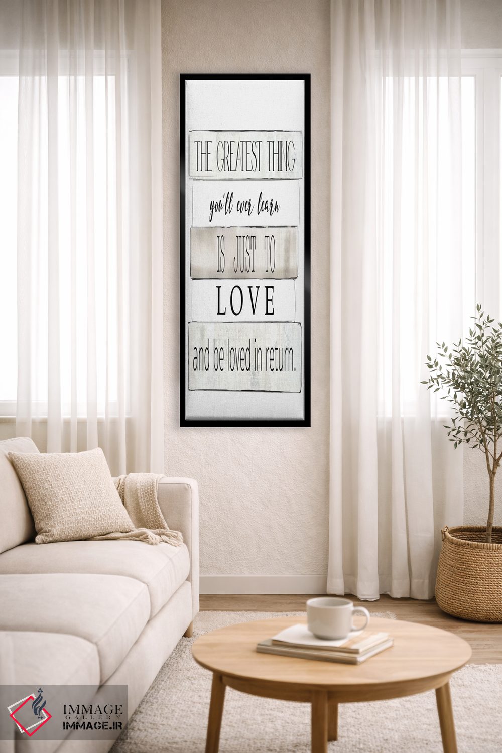 براساس پالت خنثی اثر، قاب مشکی مات (فریم باریک) پیشنهاد اول است و سفید مات (فریم باریک) مکمل. برای سفارشهای پروژهای با ابعاد و قابهای اختصاصی با ایماژ در تماس باشید.