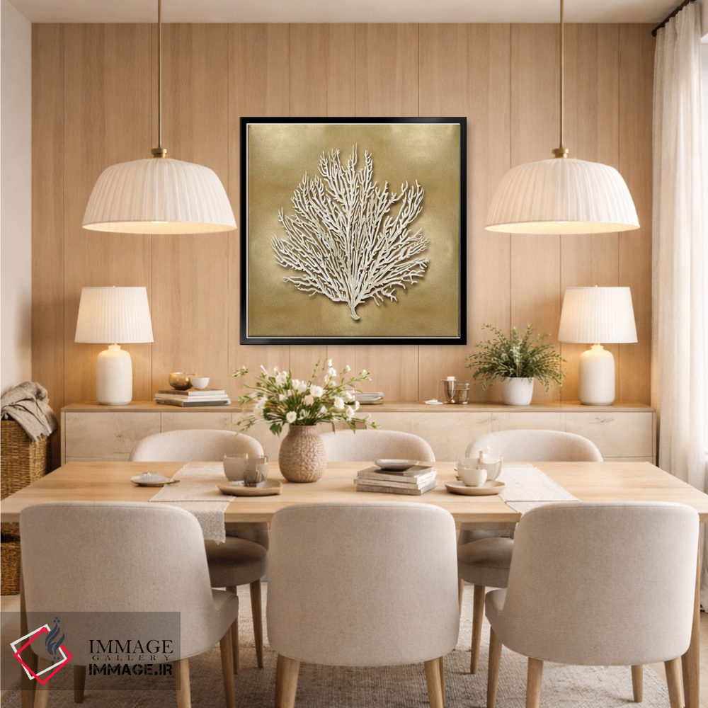 براساس پالت گرم اثر، قاب تیک گرم (چوبی) پیشنهاد اول است و مشکی مات (فریم متوسط) مکمل. برای سفارشهای پروژهای با ابعاد و قابهای اختصاصی با ایماژ در تماس باشید.
