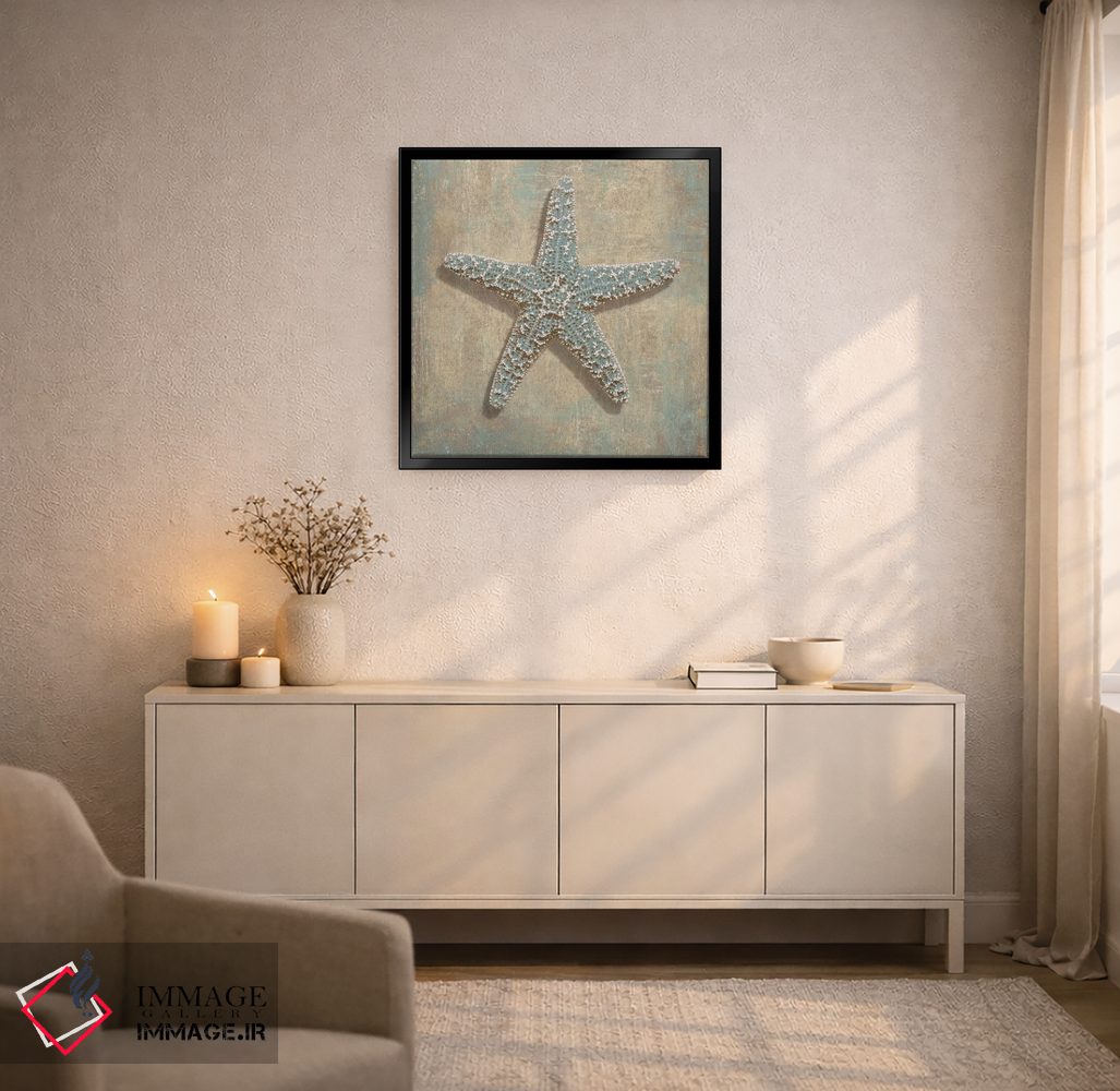 «ستاره دریایی آبی» اثرِ «کارولین کلی» از آن کارهاییست که یک لبخند ریز به چیدمان میدهد؛ برای فضاهای روستیک یا بوهو انتخاب خوبیست. هم فضا را گرم میکند، هم شلوغش نمیکند.