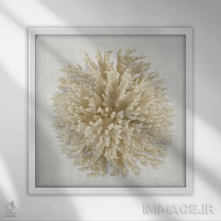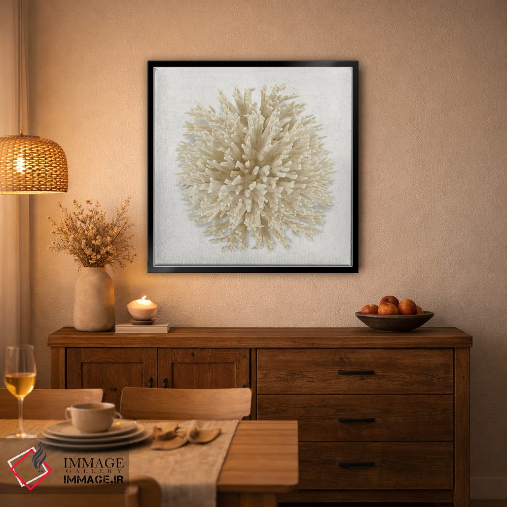 براساس پالت گرم اثر، قاب بلوط روشن (چوبی) پیشنهاد اول است و استخوانی ملایم مکمل. برای سفارشهای پروژهای با ابعاد و قابهای اختصاصی با ایماژ در تماس باشید.