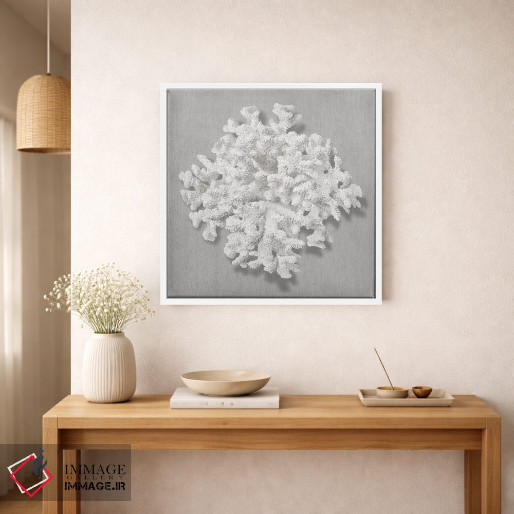 اگر به آثار حیوانات علاقه دارید، «مرجان روی خاکستری II» اثرِ «کارولین کلی» به فضا، گرمیِ ملایم اضافه میکند، برای دیوار کنار میز کار گزینهٔ مناسبیست. با نورپردازی نقطهای، جذابتر هم میشود.