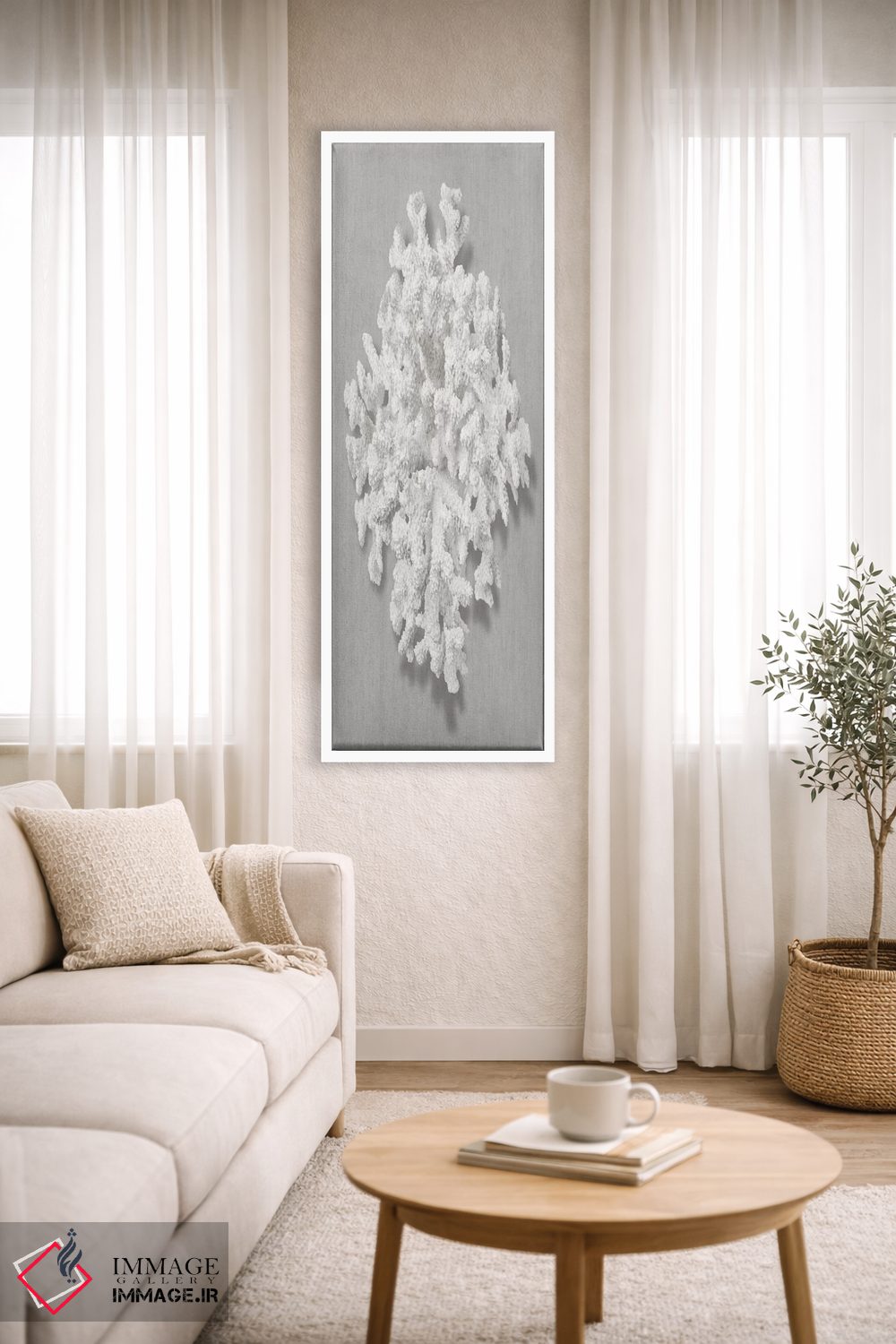 براساس پالت خنثی اثر، قاب مشکی مات (فریم باریک) پیشنهاد اول است و سفید مات (فریم باریک) مکمل. برای سفارشهای پروژهای با ابعاد و قابهای اختصاصی با ایماژ در تماس باشید.