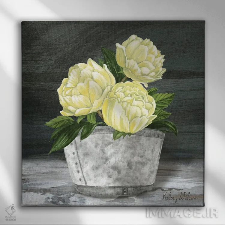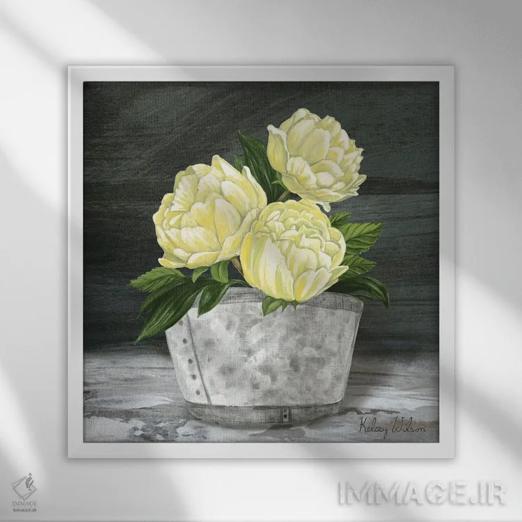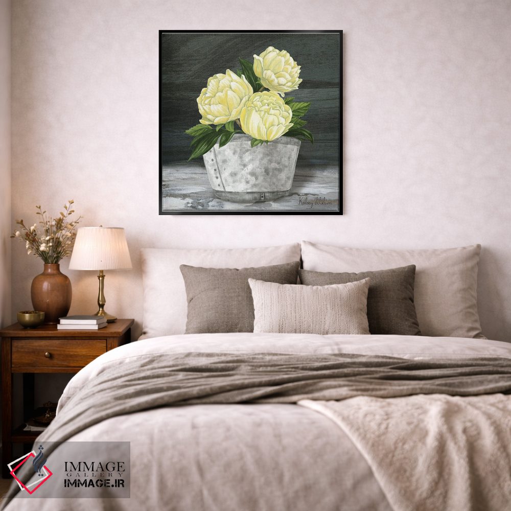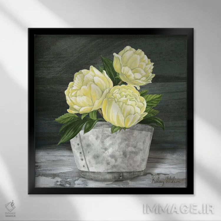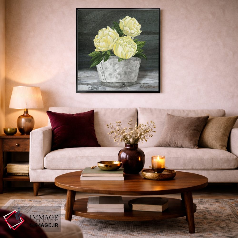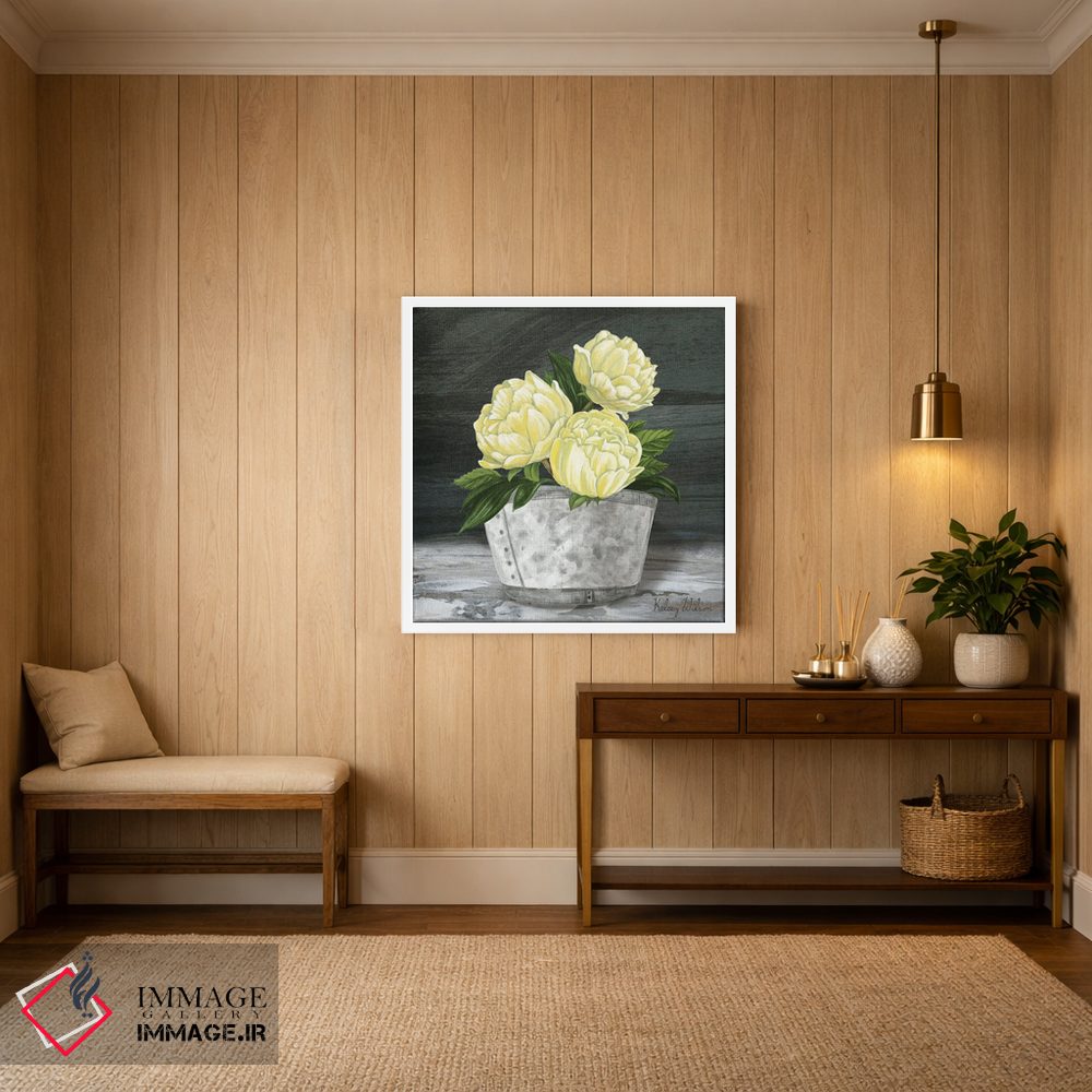 در «مربع باغ روستایی—صدتومانیها» اثرِ «کلسی ویلسون»، گلها و گیاهان به دیوار، روشناییِ ملایم و دلنشین میدهد؛ برای دکورهای اسکانباوراوی انتخابی خوشسلیقه است. با قاب روشن یا چوبی، حس طبیعیتری پیدا میکند.