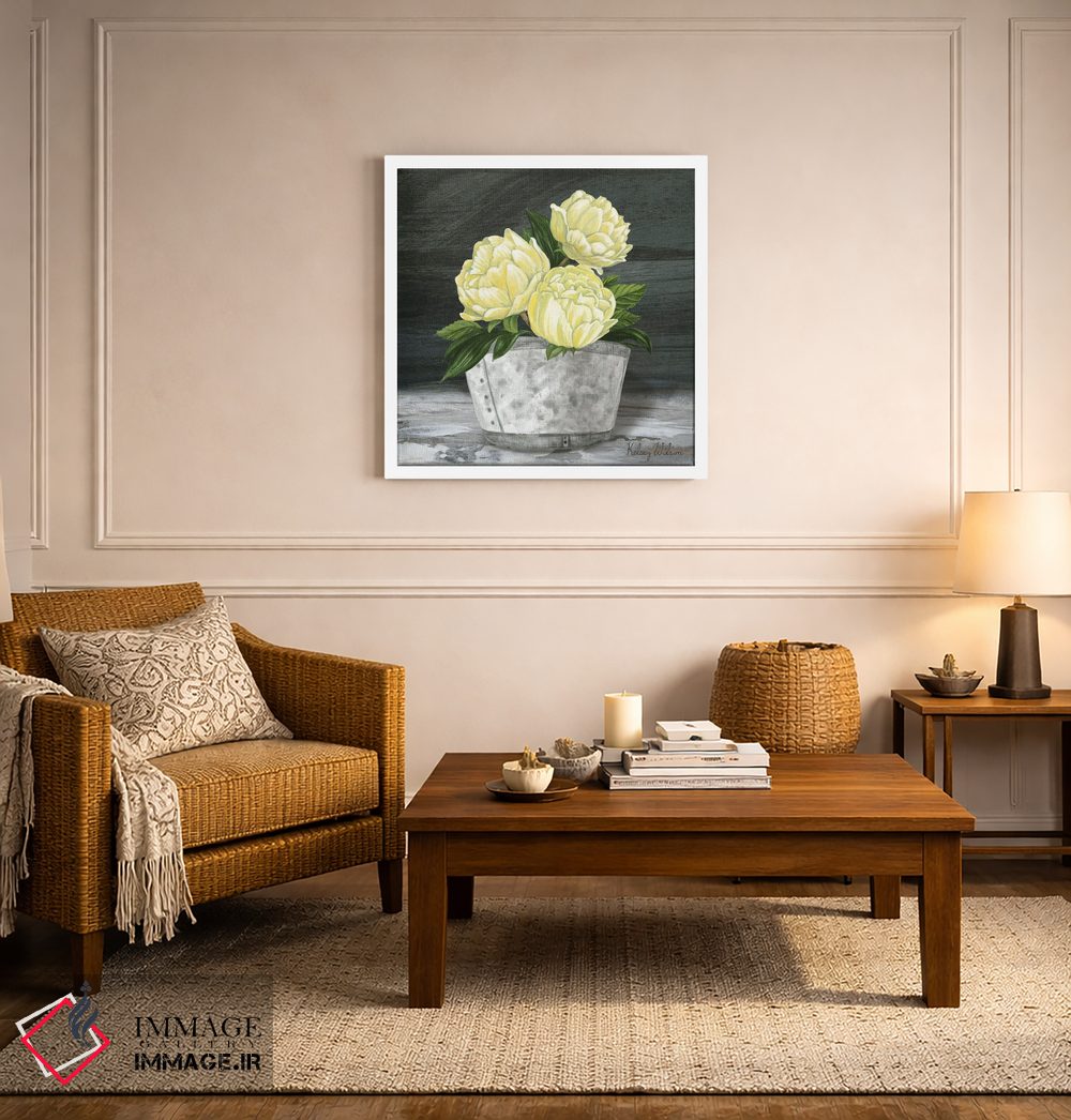 اگر فضا مینیمال است، سبز را در دستهگل خشک دوباره بیاورید تا تعادل بین گرم و سرد بهتر برقرار شود. انتخاب قاب هم میتواند این اکسنت را تقویت کند.