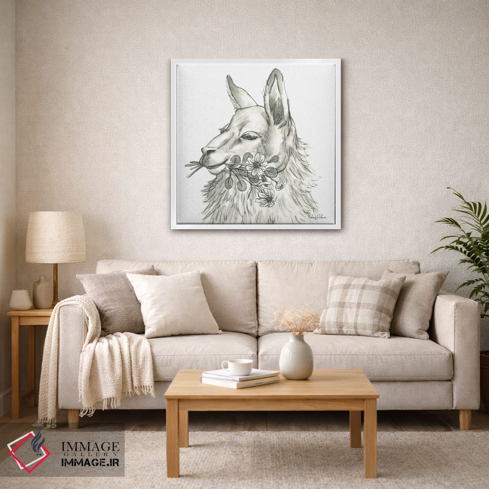 اگر میخواهید دیوار کمی سرزندگیِ محترمانه داشته باشد، «مزرعه آبرنگی VII—لاما» اثرِ «کلسی ویلسون» برای دکورهای مینیمال، یک نقطهٔ توجه میسازد، برای نشیمنهای خانوادگی گزینهٔ مناسبیست. هم فضا را گرم میکند، هم شلوغش نمیکند.