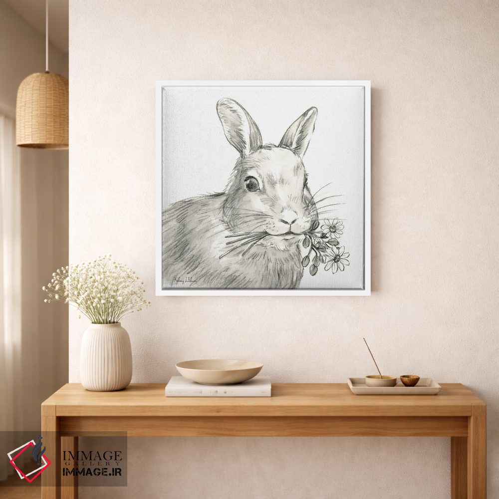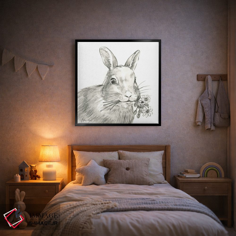 اگر به آثار حیوانات علاقه دارید، «مزرعه آبرنگی V—خرگوش» اثرِ «کلسی ویلسون» حس طبیعت را بیدغدغه وارد خانه میکند، برای فضاهای روستیک یا بوهو گزینهٔ مناسبیست. با نورپردازی نقطهای، جذابتر هم میشود.
