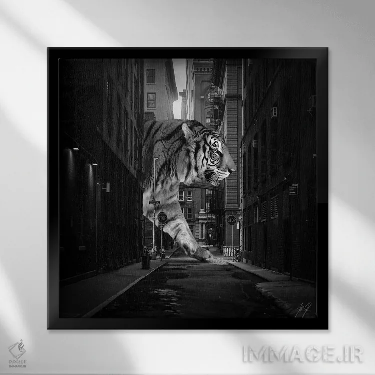 تابلو دکوراتیو ببر در نیویورک اثر کاترین فدرر - نمای قاب‌دار مشکی