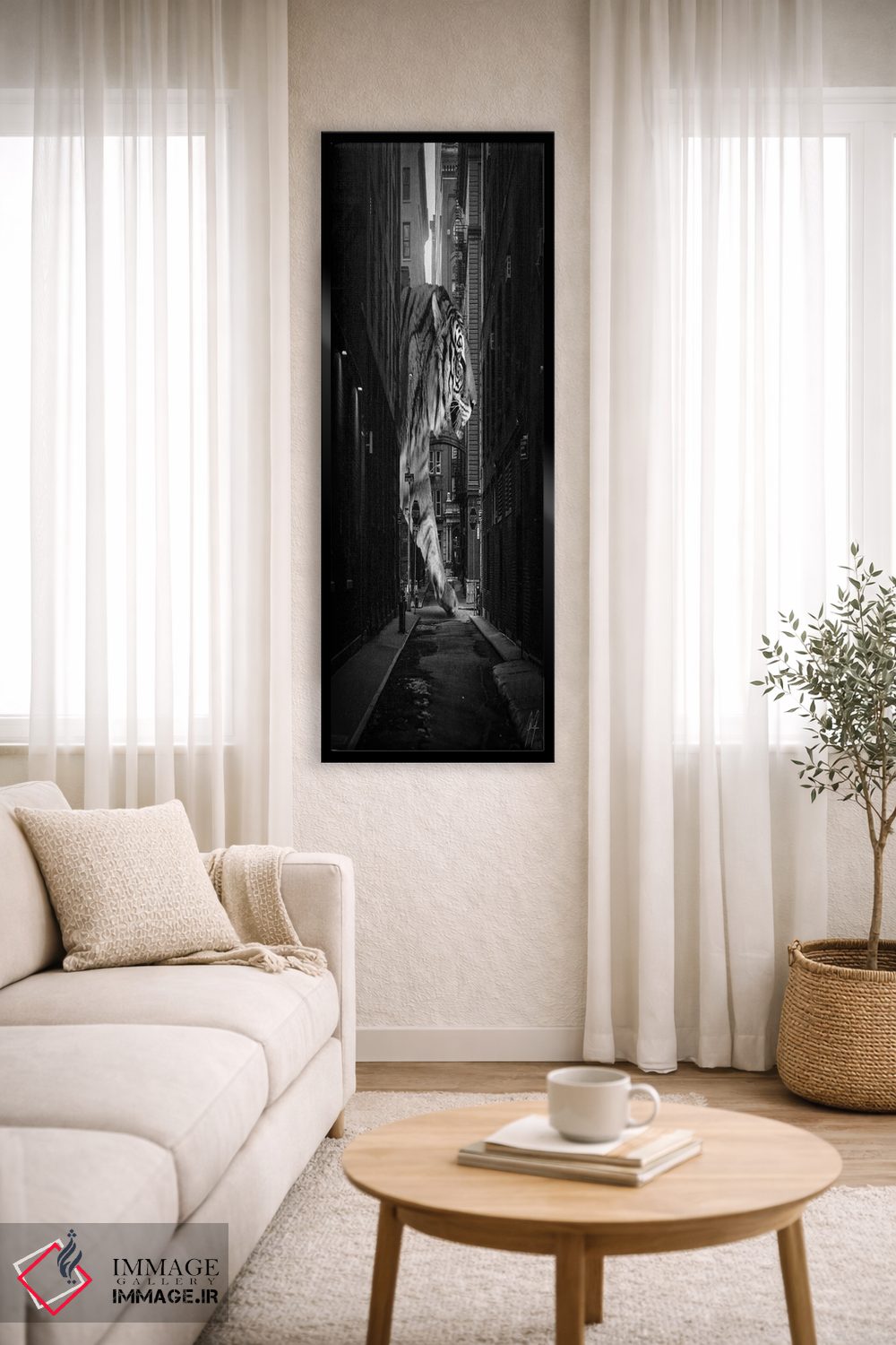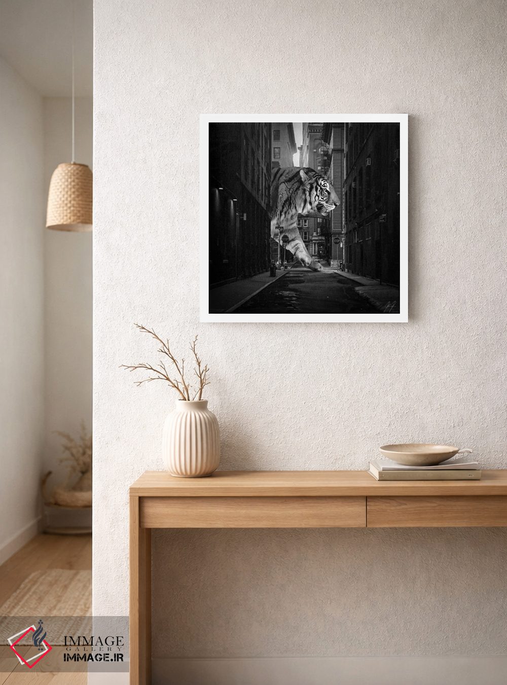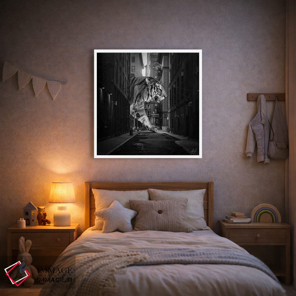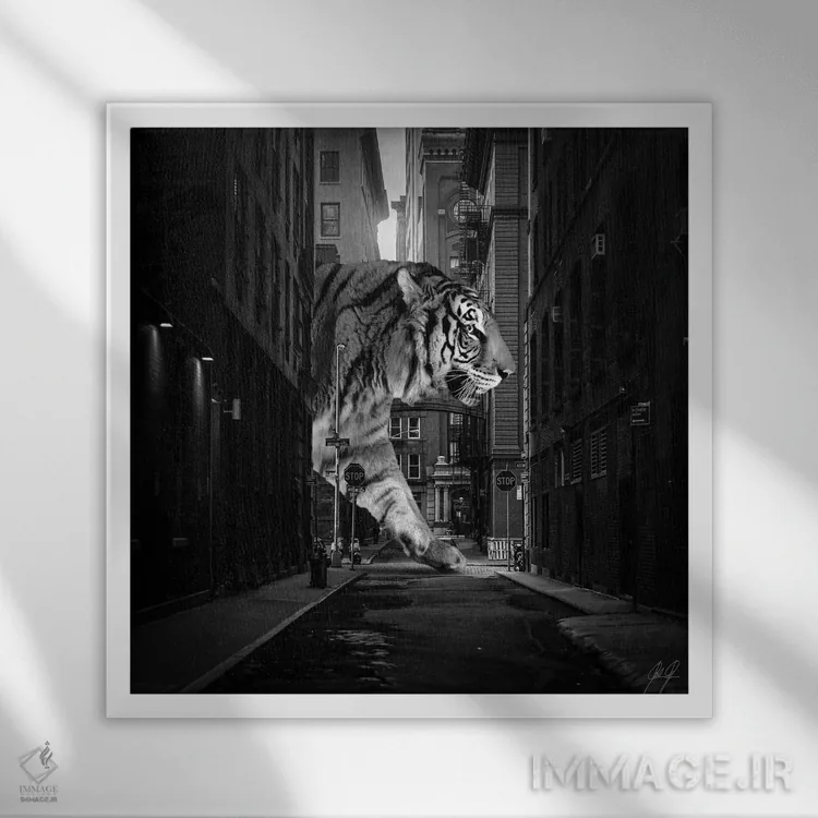 تابلو دکوراتیو ببر در نیویورک اثر کاترین فدرر - نمای قاب‌دار سفید