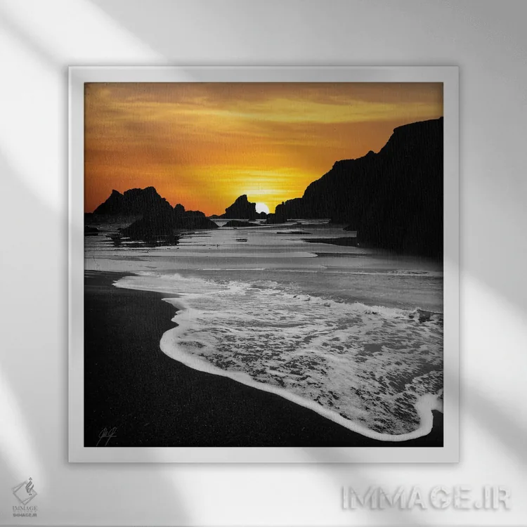 براساس پالت گرم اثر، قاب تیک گرم (چوبی) پیشنهاد اول است و مشکی مات (فریم متوسط) مکمل. برای سفارشهای پروژهای با ابعاد و قابهای اختصاصی با ایماژ در تماس باشید.