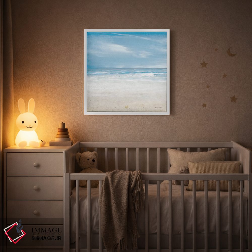 براساس پالت سرد اثر، قاب سفید مات (فریم باریک) پیشنهاد اول است و نقرهای برسخورده (متالیک) مکمل. برای سفارشهای پروژهای با ابعاد و قابهای اختصاصی با ایماژ در تماس باشید.