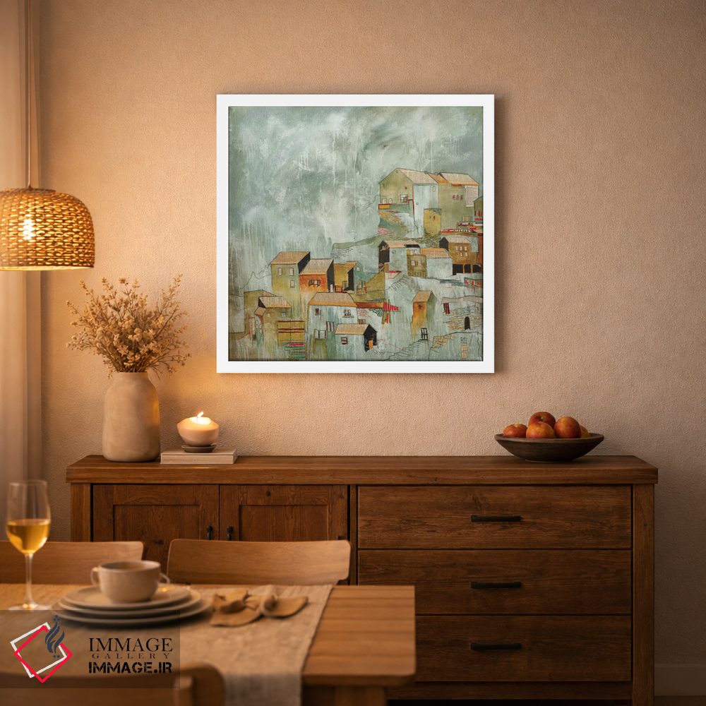 براساس پالت گرم اثر، قاب بلوط روشن (چوبی) پیشنهاد اول است و استخوانی ملایم مکمل. برای سفارشهای پروژهای با ابعاد و قابهای اختصاصی با ایماژ در تماس باشید.
