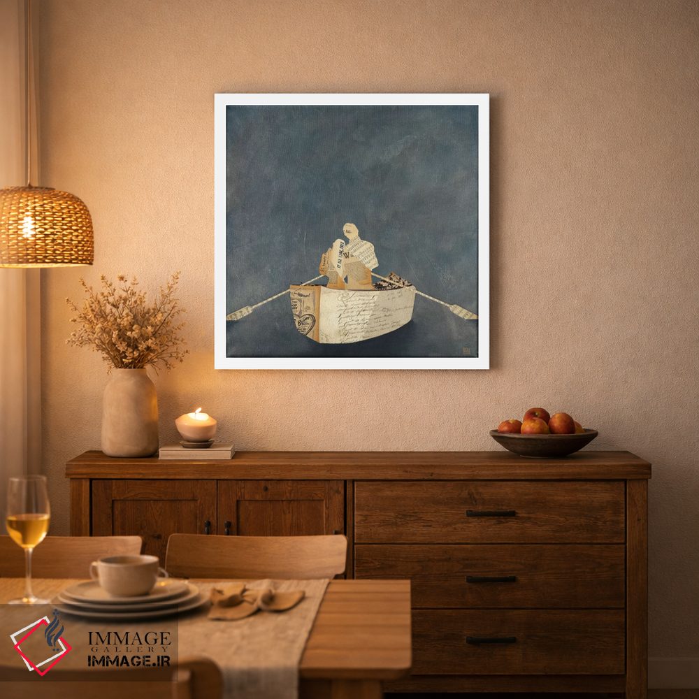 براساس پالت گرم اثر، قاب بلوط روشن (چوبی) پیشنهاد اول است و استخوانی ملایم مکمل. برای سفارشهای پروژهای با ابعاد و قابهای اختصاصی با ایماژ در تماس باشید.