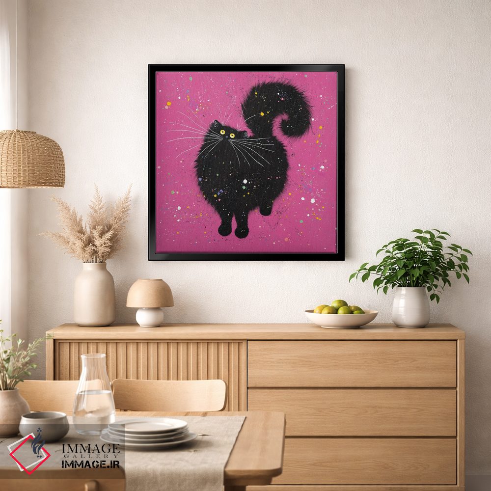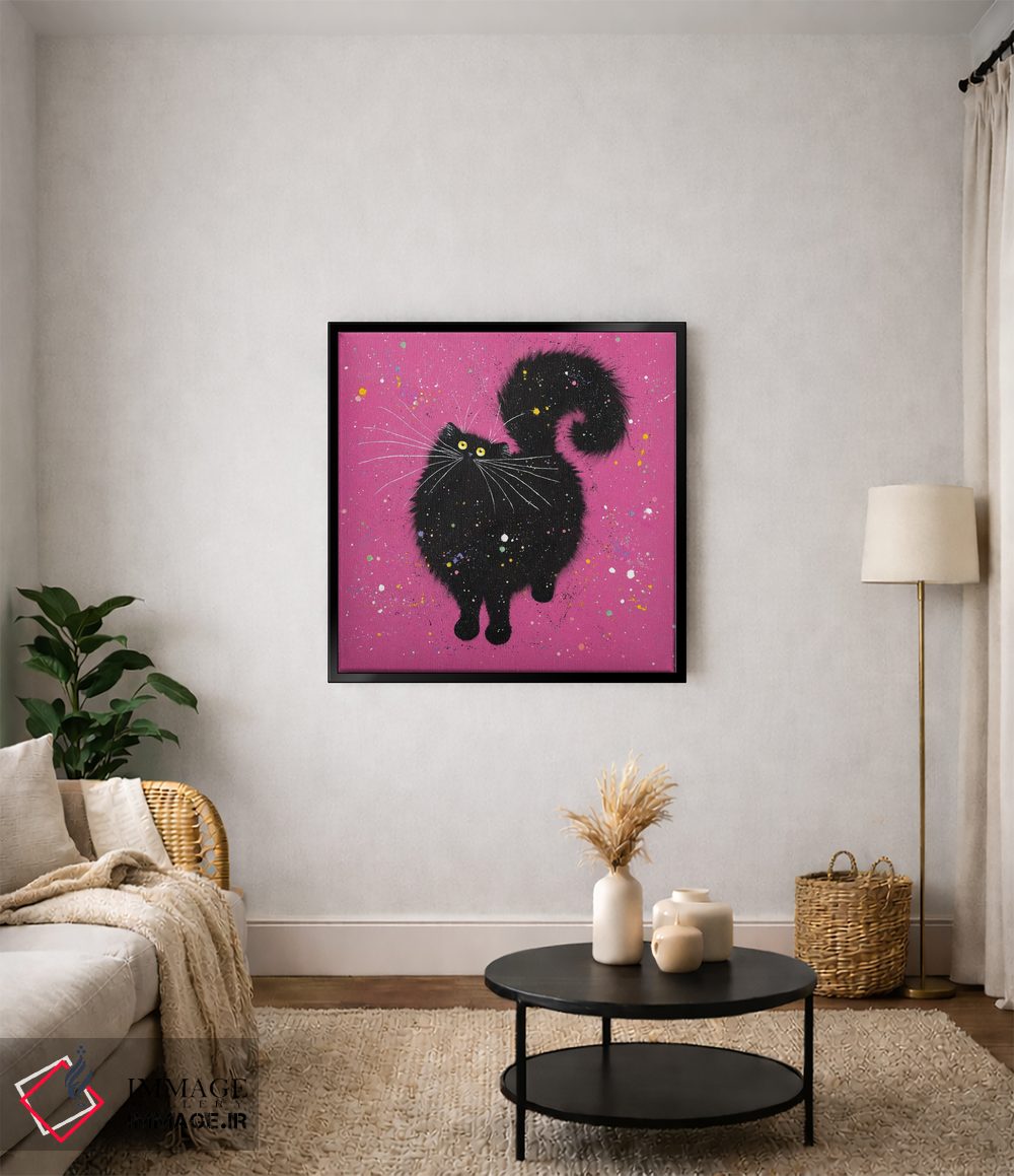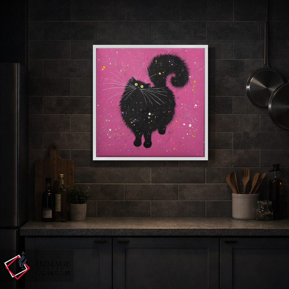 تابلو دکوراتیو گربه سیاه و صورتی فوق العاده اثر کیم هاسکینز