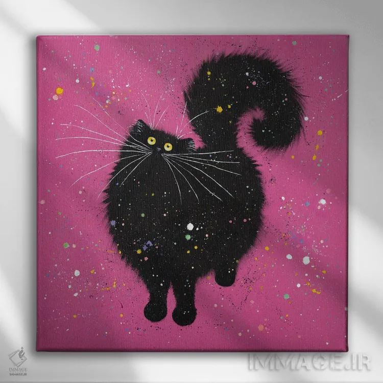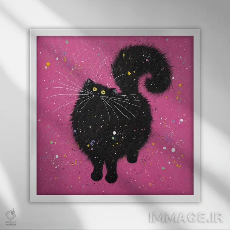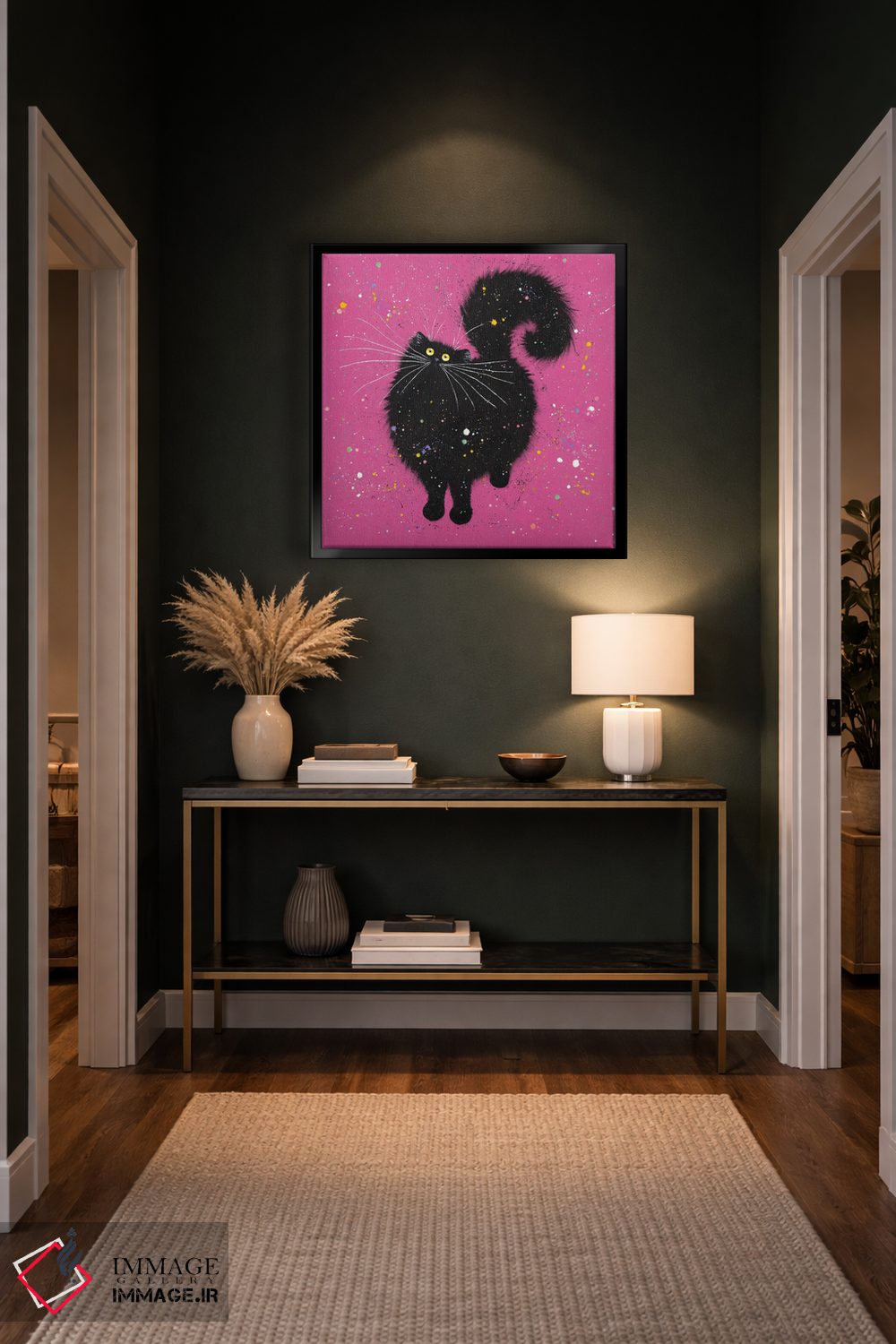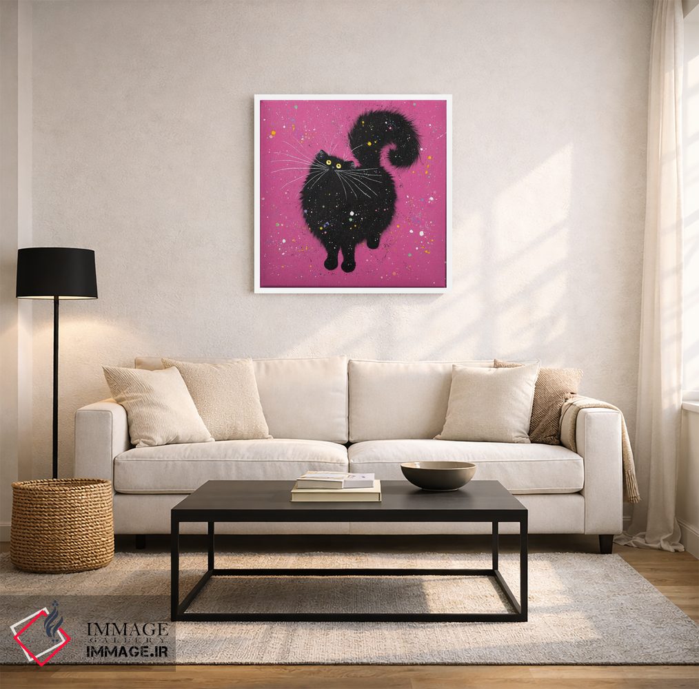 تابلو دکوراتیو گربه سیاه و صورتی فوق العاده اثر کیم هاسکینز