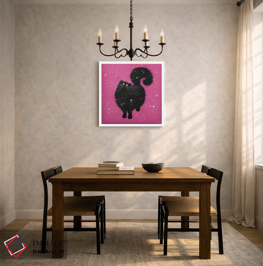 «گربه سیاه و صورتی فوقالعاده» اثرِ «کیم هاسکینز» میتواند بافت و جزئیات را طوری نشان بدهد که نگاه میماند؛ برای دیوار کنار میز کار پیشنهاد میشود. برای دیوار گالریوار هم گزینهٔ خوبیست.