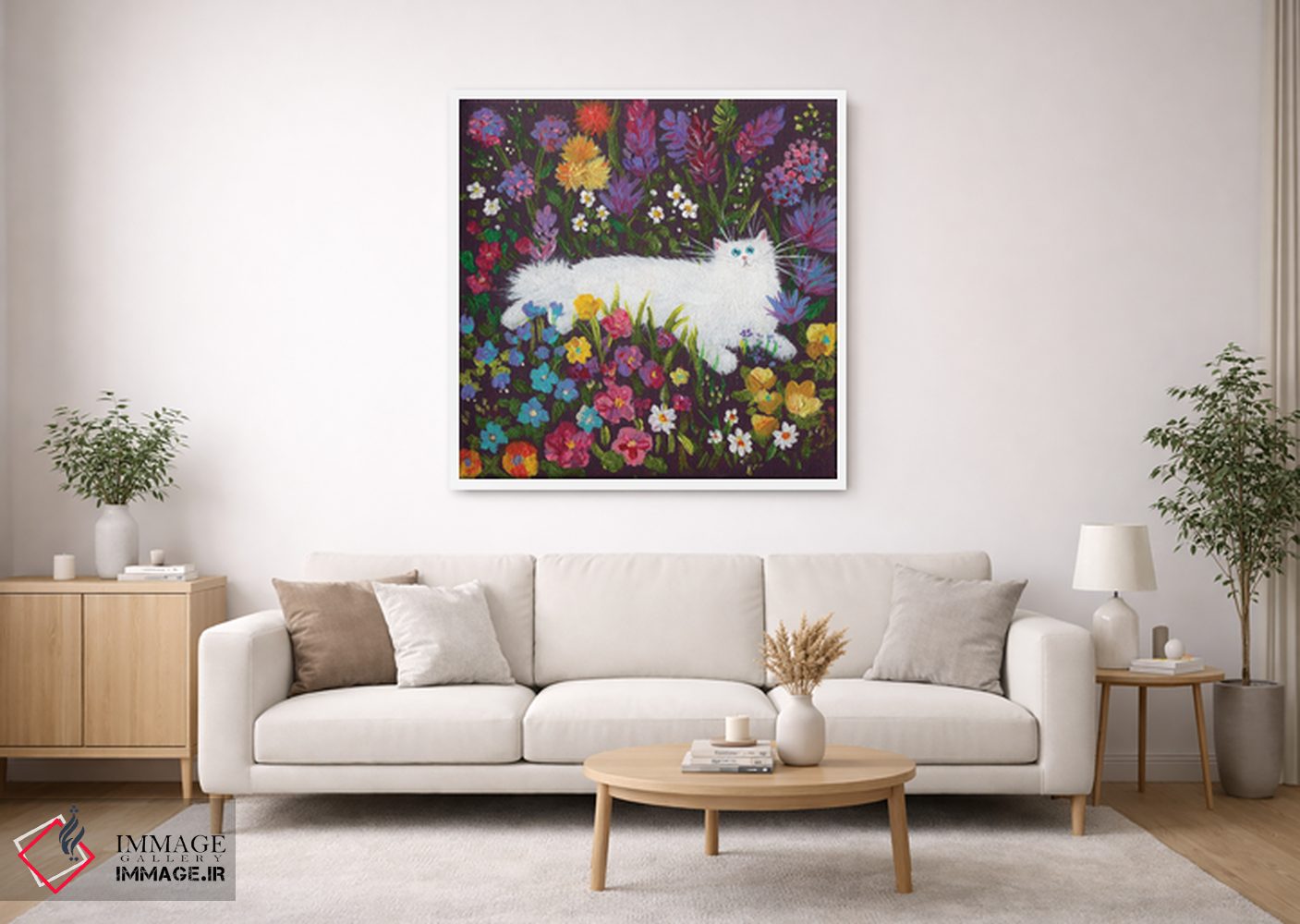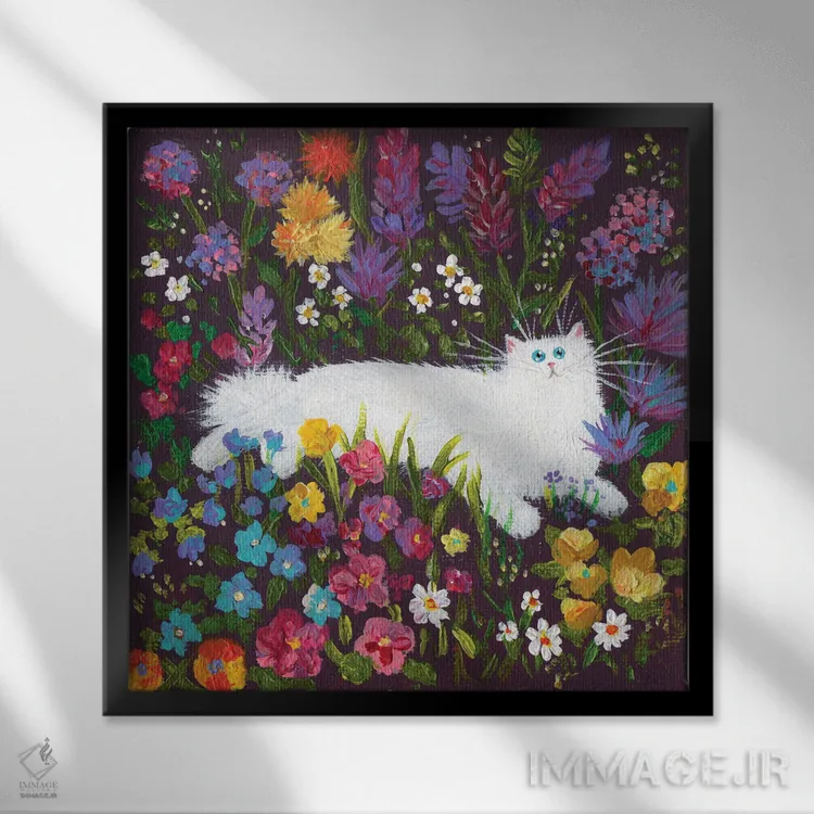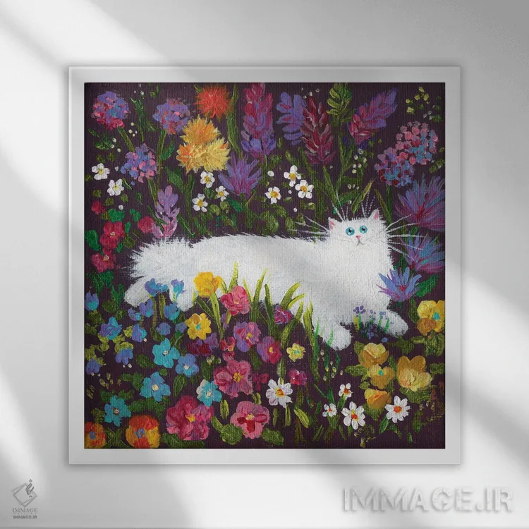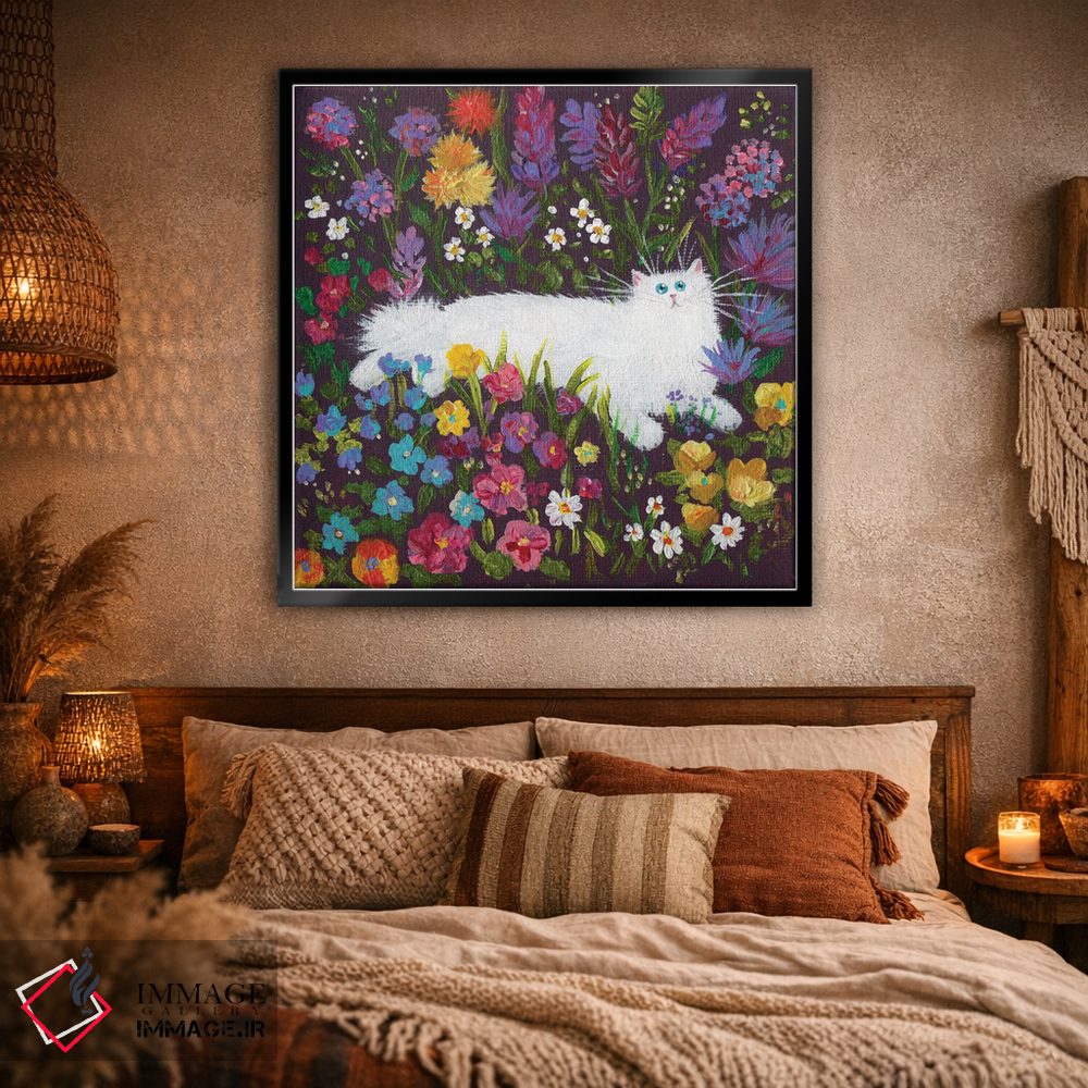 اگر میخواهید دیوار کمی سرزندگیِ محترمانه داشته باشد، «گربه سفید در میان گلها» اثرِ «کیم هاسکینز» برای دکورهای مینیمال، یک نقطهٔ توجه میسازد، برای اتاق کودک (بدون لحن کودکانه) گزینهٔ مناسبیست. با قاب چوبی یا مشکی، حس مرتبتری پیدا میکند.