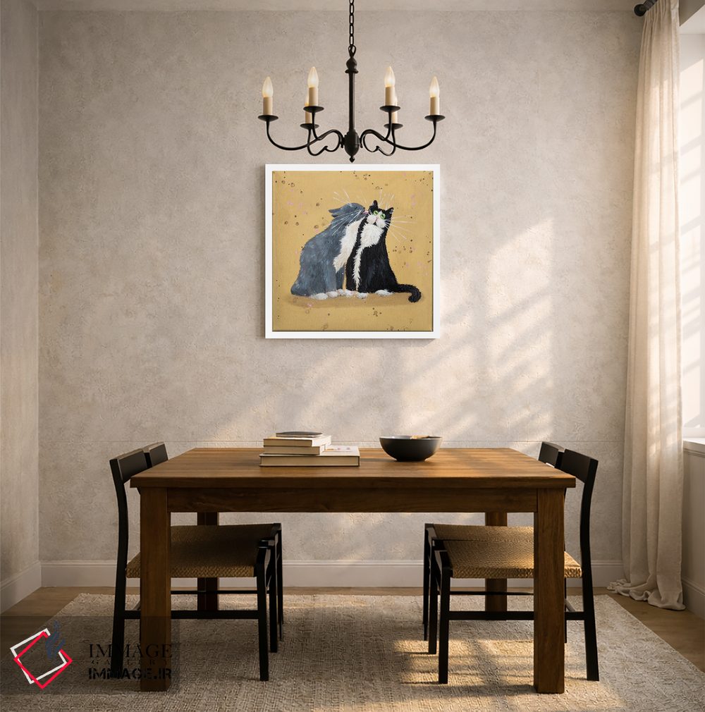 اگر به آثار حیوانات علاقه دارید، «بوسه» اثرِ «کیم هاسکینز» به فضا، گرمیِ ملایم اضافه میکند، برای راهروها و ورودیهای گرم گزینهٔ مناسبیست. با نورپردازی نقطهای، جذابتر هم میشود.