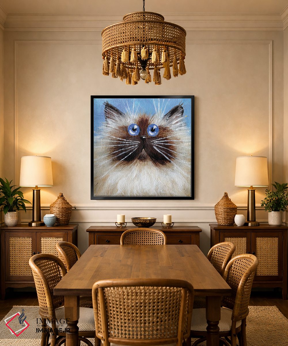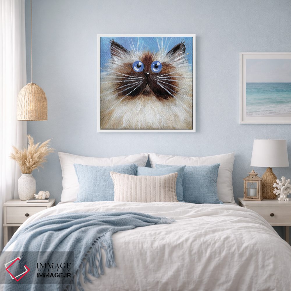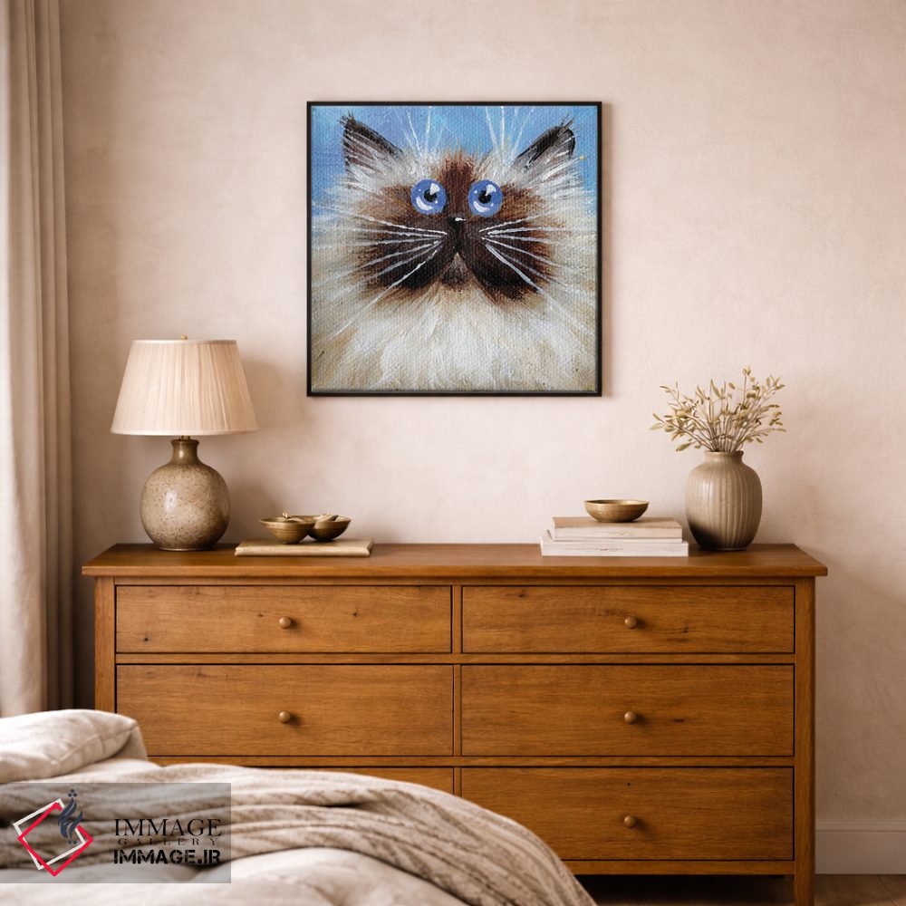 برای اتاقی که به یک عنصر دوستداشتنی نیاز دارد، «سیلپوینت کوچک روی آبی» اثرِ «کیم هاسکینز» فضا را صمیمیتر و دعوتکنندهتر نشان میدهد؛ برای کافههای کوچک و صمیمی انتخابی خوشسلیقه است. با قاب چوبی یا مشکی، حس مرتبتری پیدا میکند.