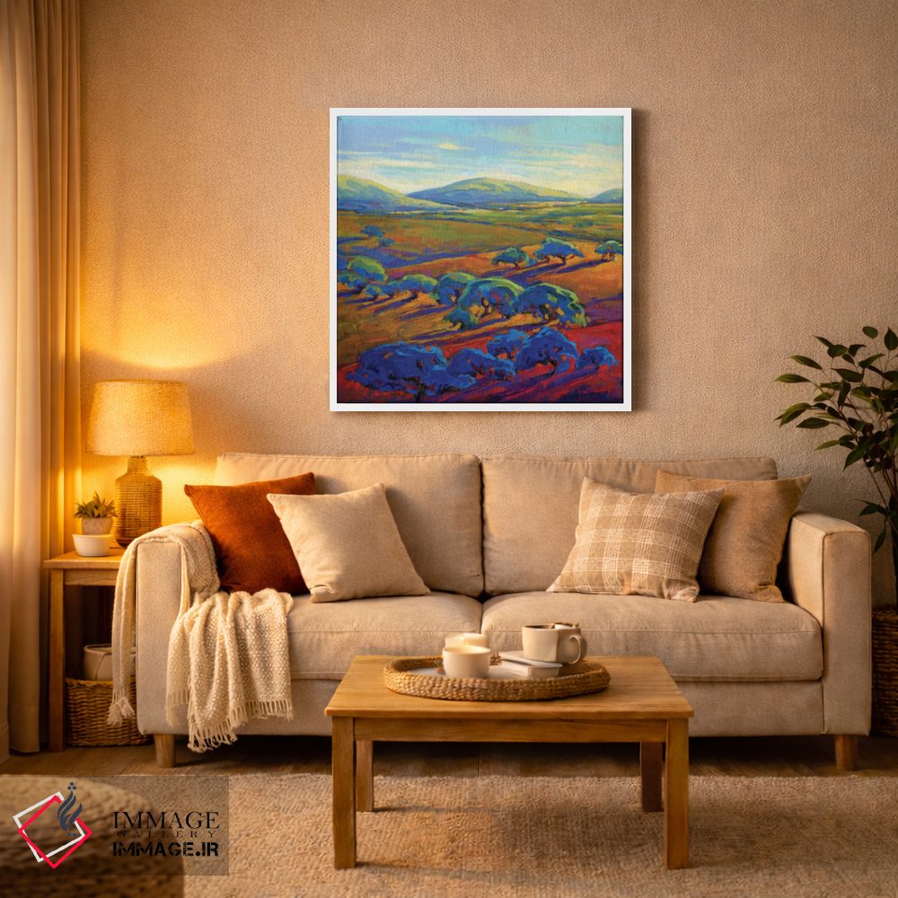براساس پالت ترکیبی اثر، قاب تیک گرم (چوبی) پیشنهاد اول است و مشکی مات (فریم متوسط) مکمل. برای سفارشهای پروژهای با ابعاد و قابهای اختصاصی با ایماژ در تماس باشید.