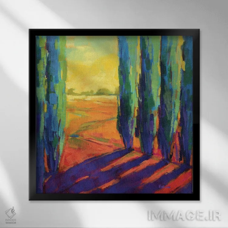 براساس پالت ترکیبی اثر، قاب تیک گرم (چوبی) پیشنهاد اول است و مشکی مات (فریم متوسط) مکمل. برای سفارشهای پروژهای با ابعاد و قابهای اختصاصی با ایماژ در تماس باشید.