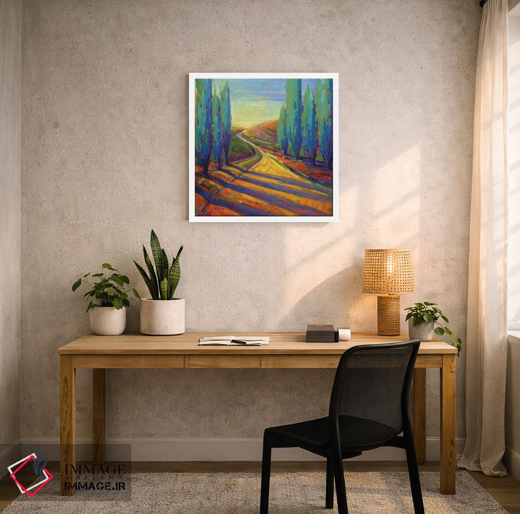 این اثر با عنوان «سایههای بعدازظهر دو» اثرِ «کانی کیم» حس فصل را آرام وارد فضا میکند؛ برای کنار میز آرایش یا کنسول انتخابی خوشسلیقه است. با قاب روشن یا چوبی، حس طبیعیتری پیدا میکند.
