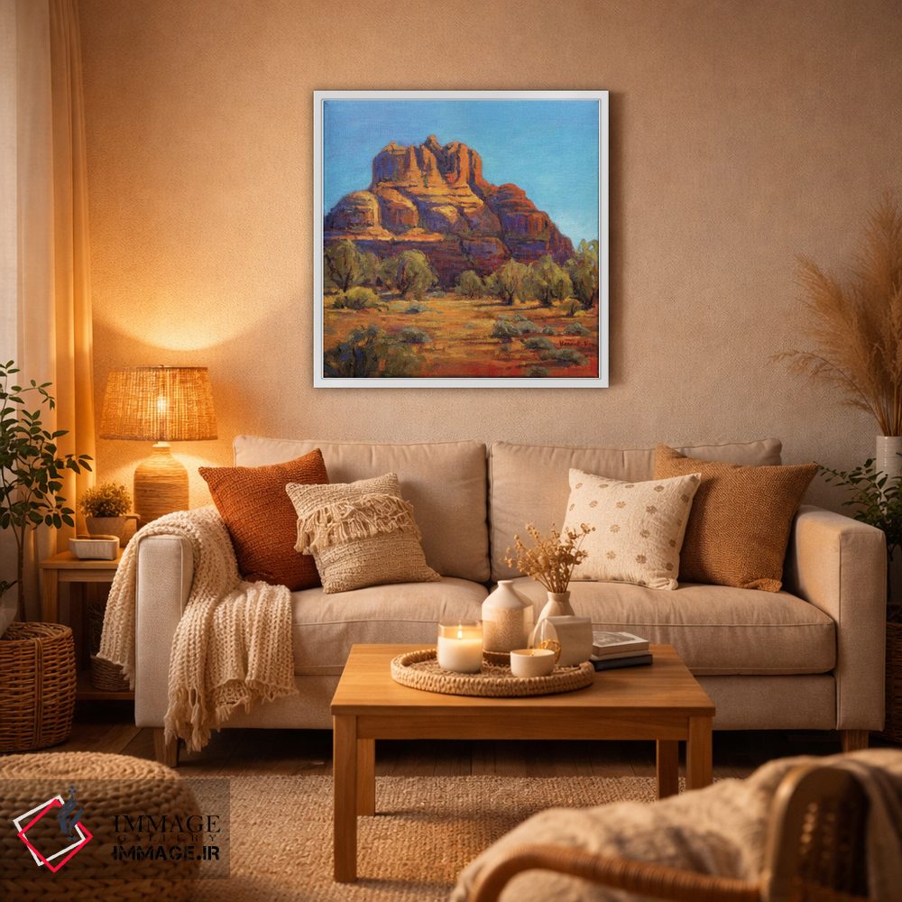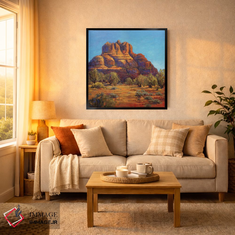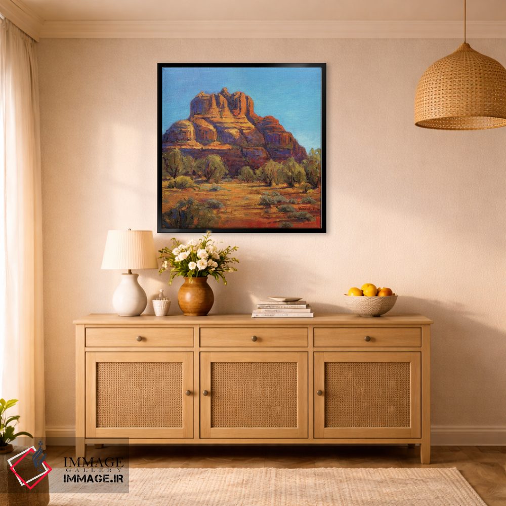 براساس پالت ترکیبی اثر، قاب تیک گرم (چوبی) پیشنهاد اول است و مشکی مات (فریم متوسط) مکمل. برای سفارشهای پروژهای با ابعاد و قابهای اختصاصی با ایماژ در تماس باشید.