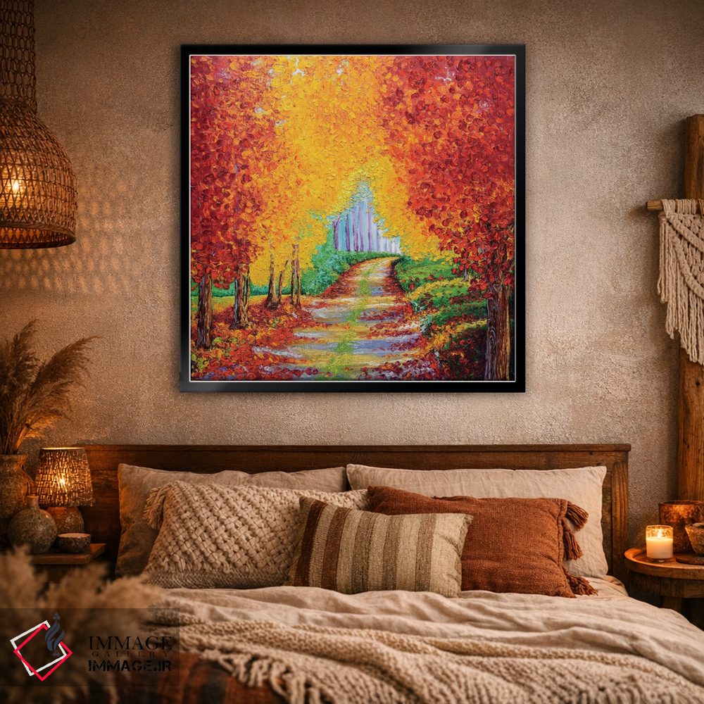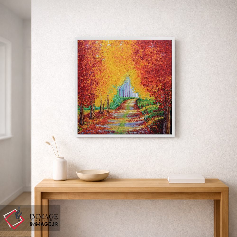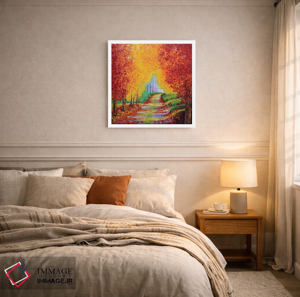 براساس پالت ترکیبی اثر، قاب تیک گرم (چوبی) پیشنهاد اول است و مشکی مات (فریم متوسط) مکمل. برای سفارشهای پروژهای با ابعاد و قابهای اختصاصی با ایماژ در تماس باشید.