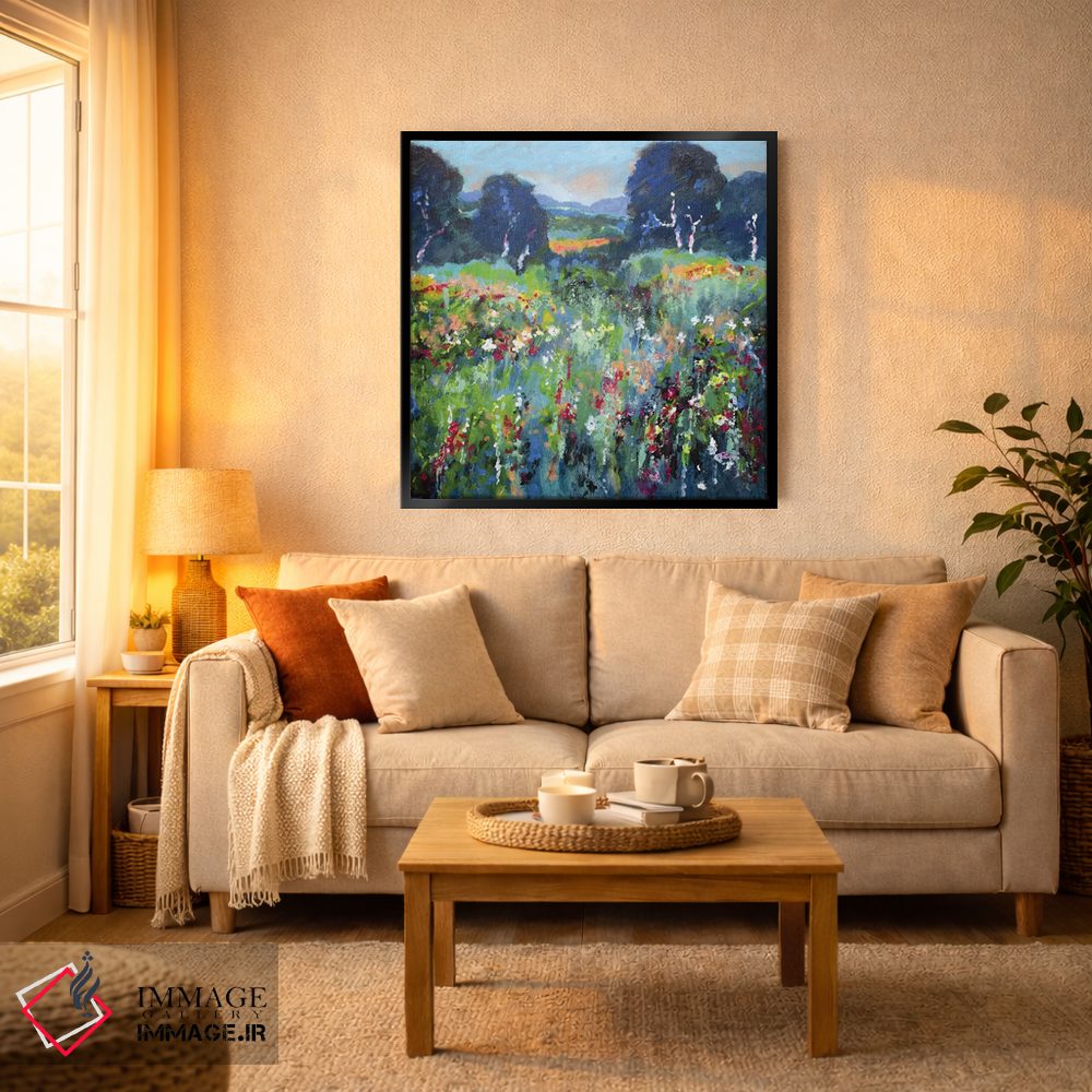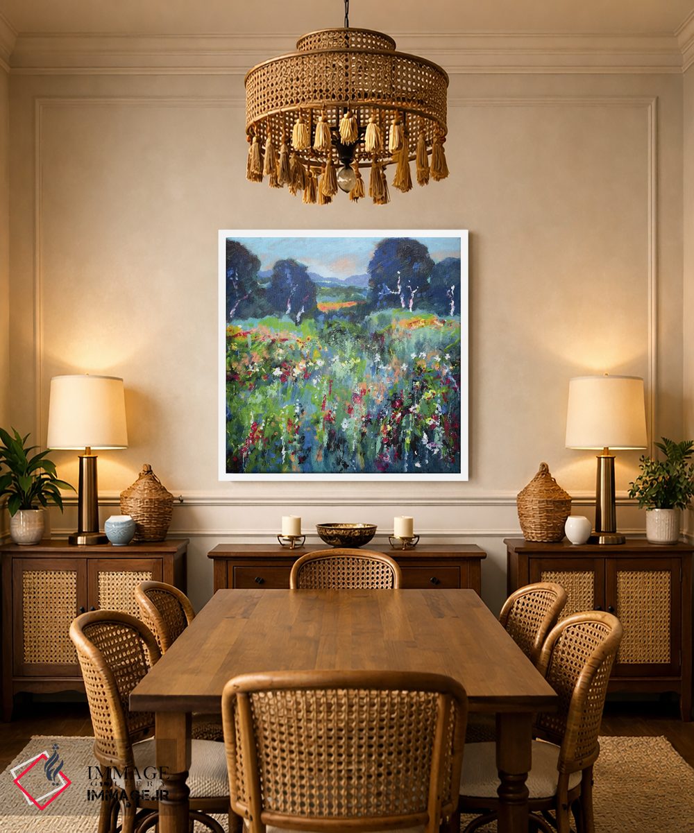 «گلهای مزرعه سبز» اثرِ «کیپ دکر» با حالوهوای دکور معاصر و موضوعِ این اثر، برای نشیمنهای امروزی و چیدمانهای ساده انتخابی دقیق است.