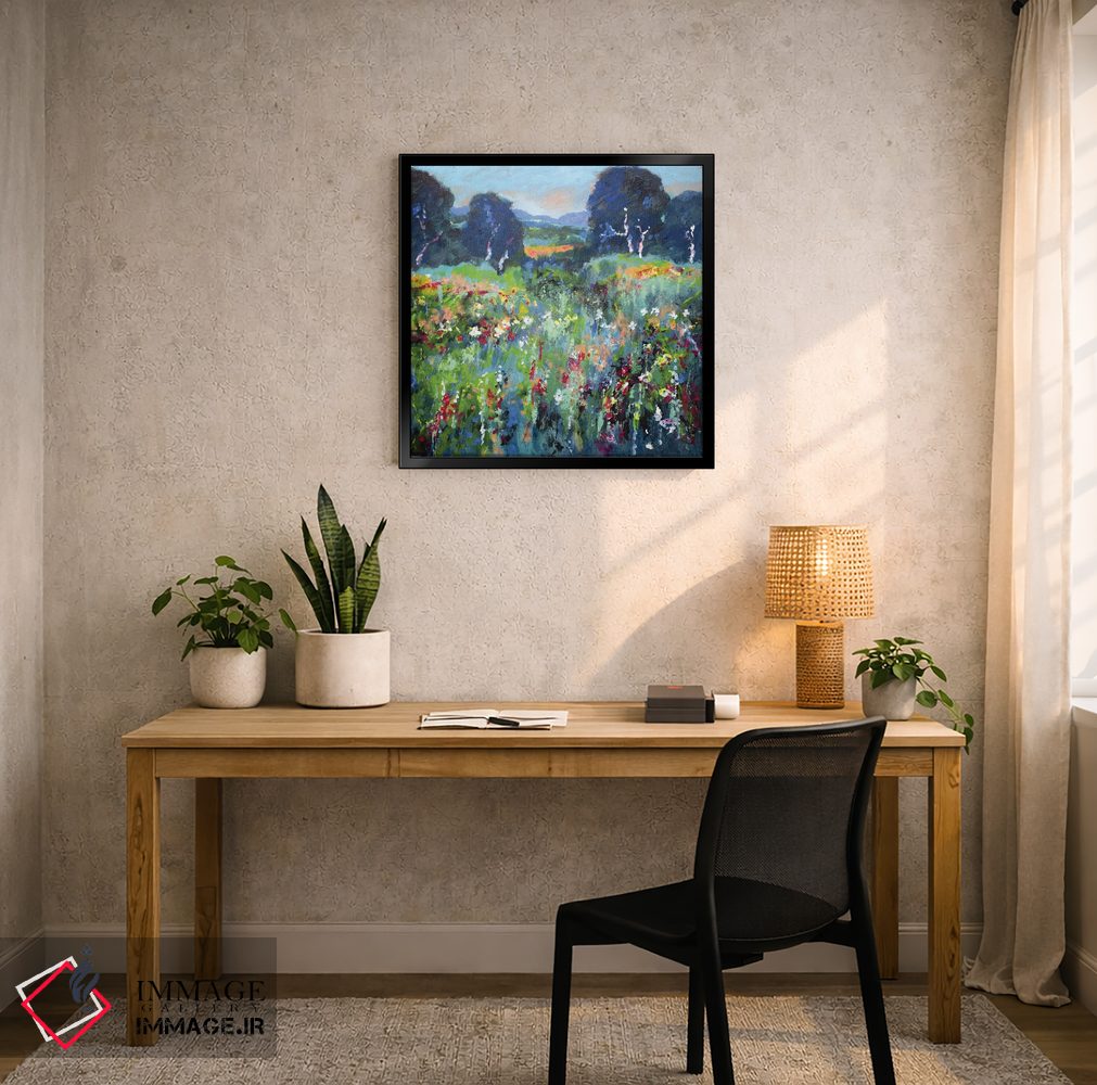 براساس پالت ترکیبی اثر، قاب تیک گرم (چوبی) پیشنهاد اول است و مشکی مات (فریم متوسط) مکمل. برای سفارشهای پروژهای با ابعاد و قابهای اختصاصی با ایماژ در تماس باشید.