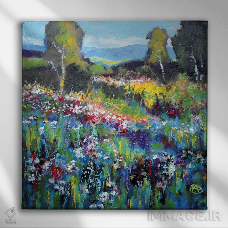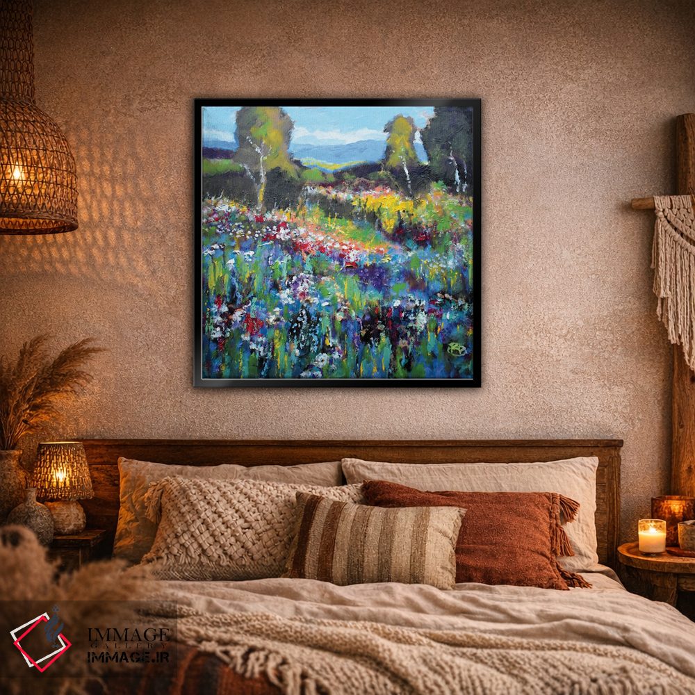 براساس پالت ترکیبی اثر، قاب تیک گرم (چوبی) پیشنهاد اول است و مشکی مات (فریم متوسط) مکمل. برای سفارشهای پروژهای با ابعاد و قابهای اختصاصی با ایماژ در تماس باشید.