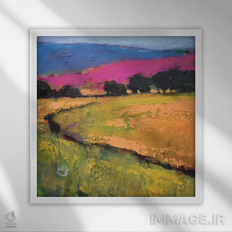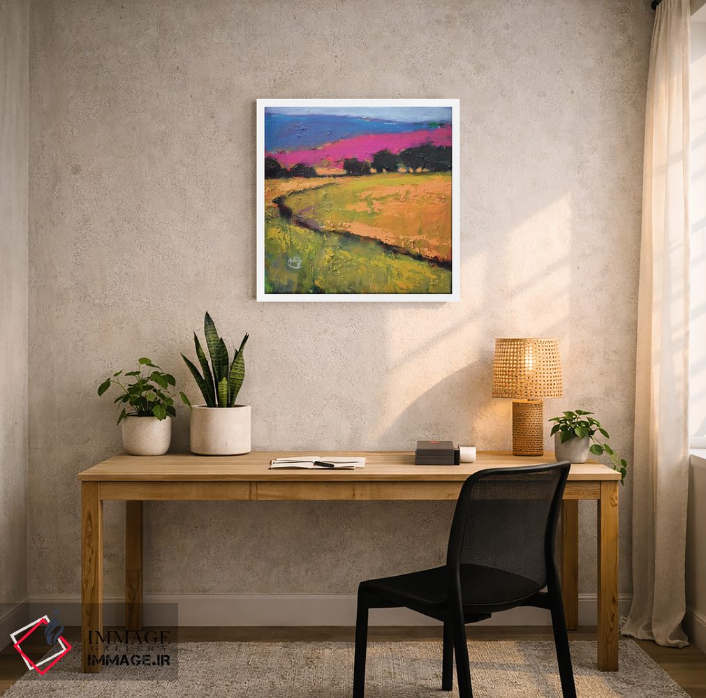 براساس پالت ترکیبی اثر، قاب تیک گرم (چوبی) پیشنهاد اول است و مشکی مات (فریم متوسط) مکمل. برای سفارشهای پروژهای با ابعاد و قابهای اختصاصی با ایماژ در تماس باشید.