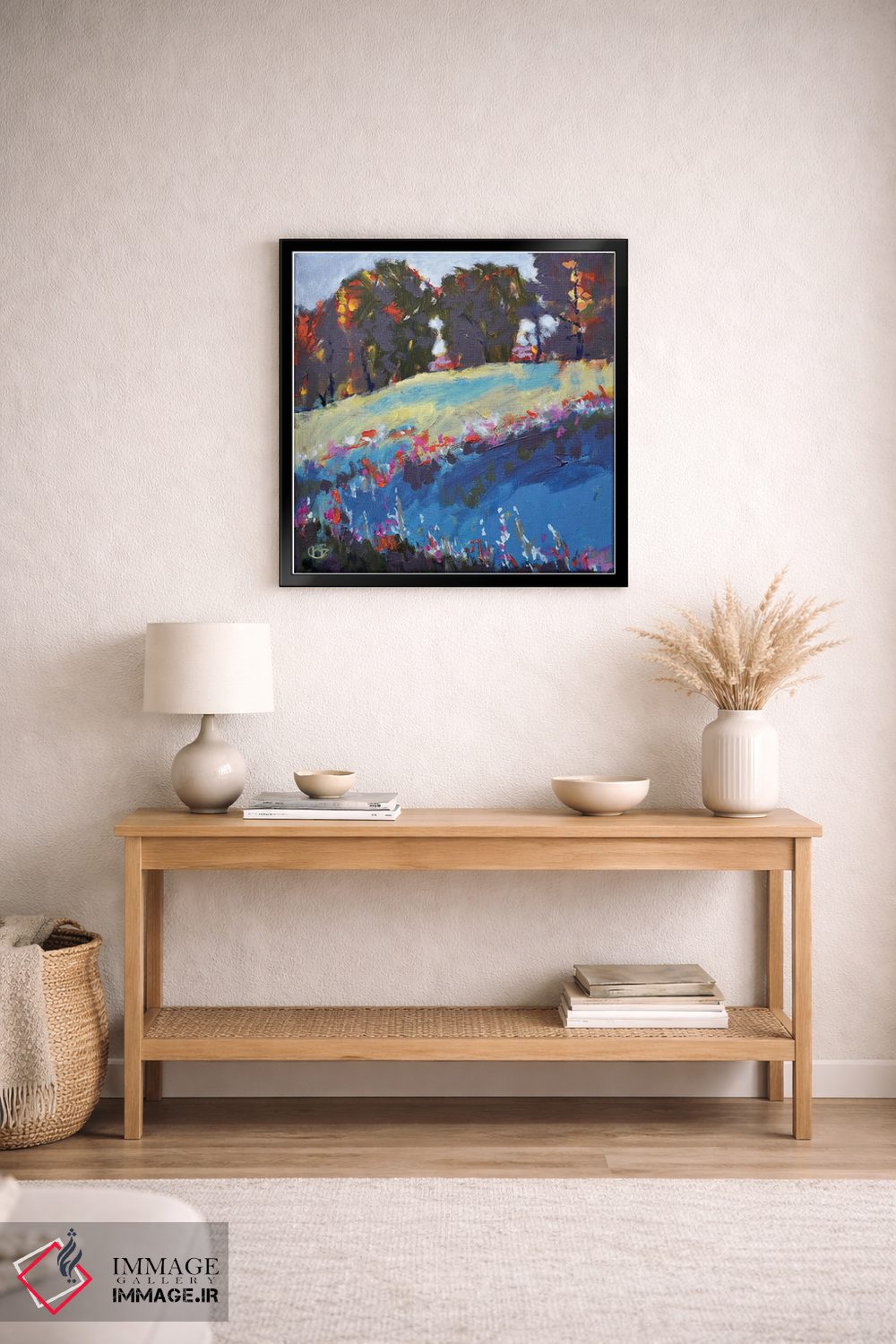 براساس پالت ترکیبی اثر، قاب تیک گرم (چوبی) پیشنهاد اول است و مشکی مات (فریم متوسط) مکمل. برای سفارشهای پروژهای با ابعاد و قابهای اختصاصی با ایماژ در تماس باشید.