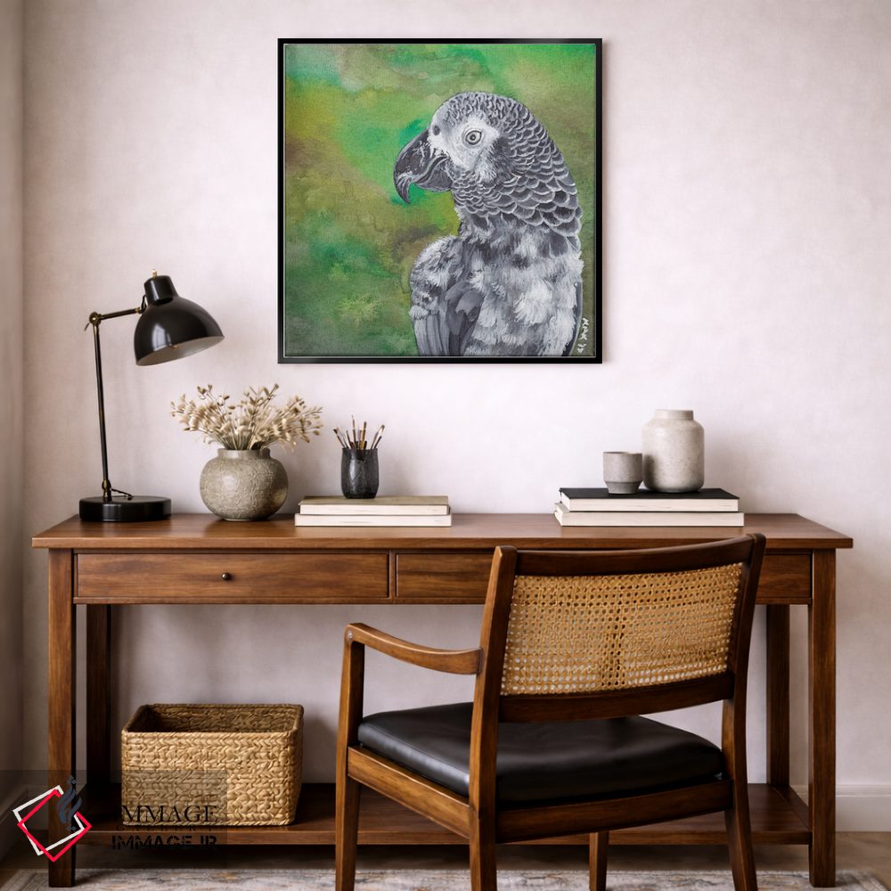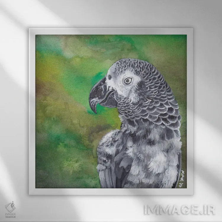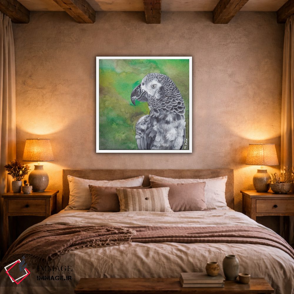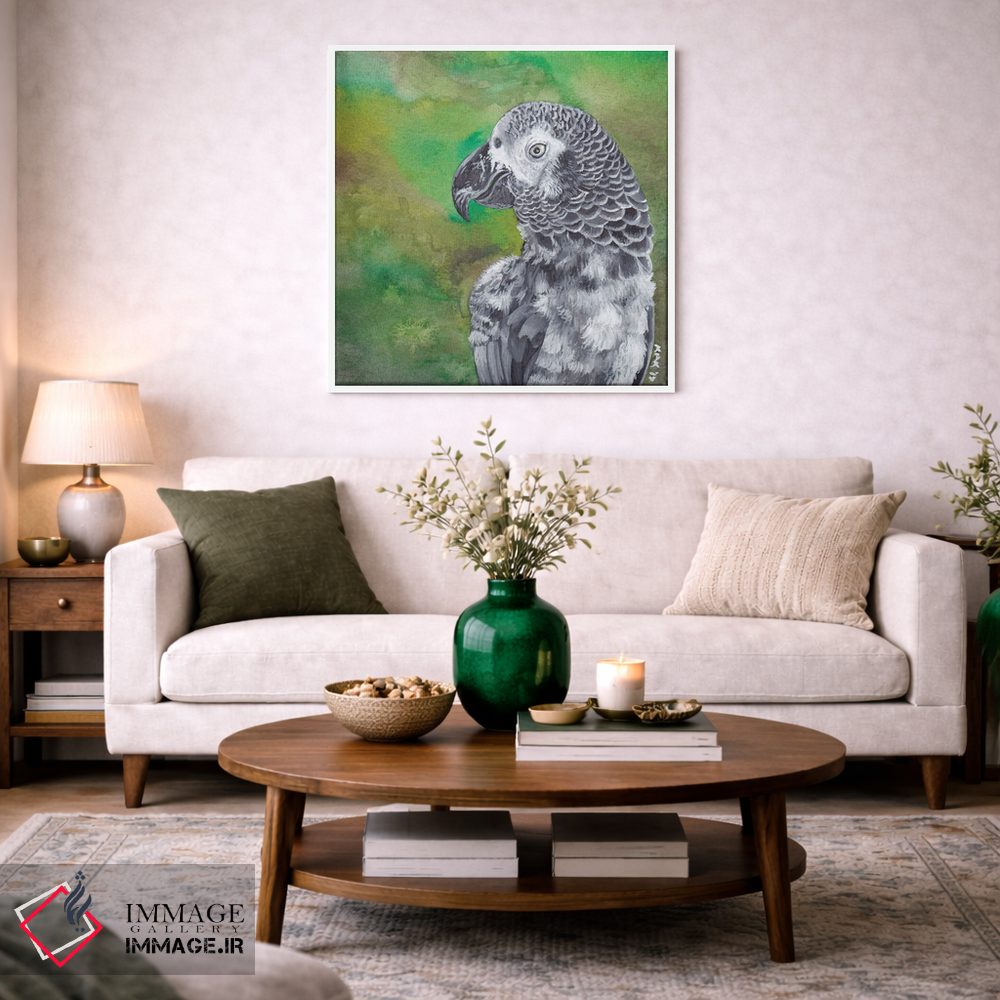 تابلو دکوراتیو طوطی خاکستری آفریقایی اثر هنر و طراحی KAK