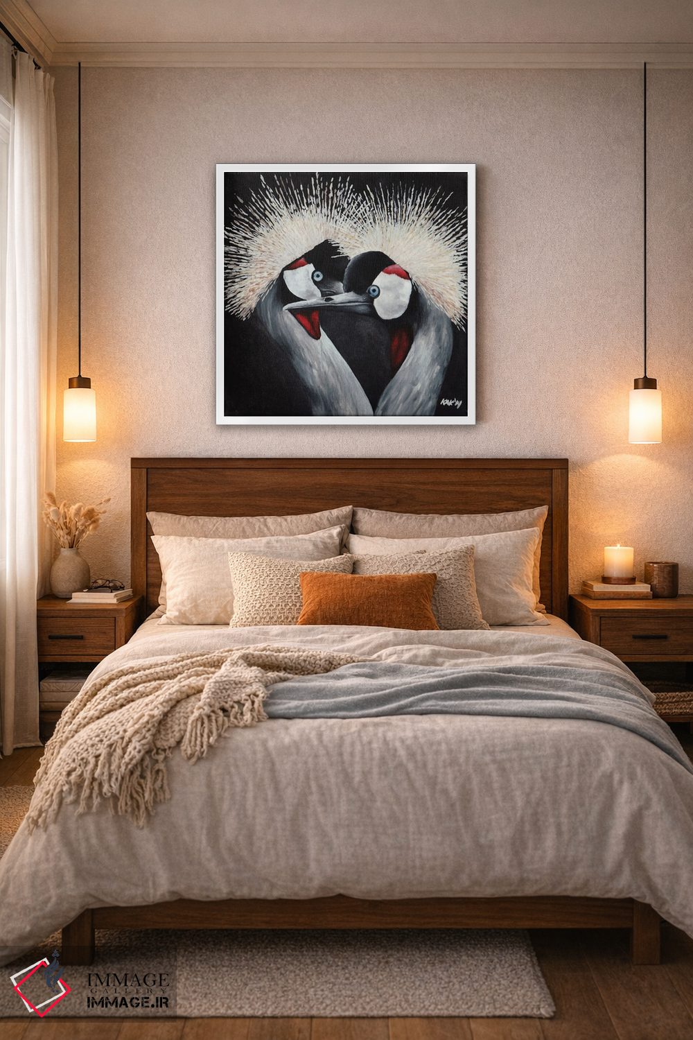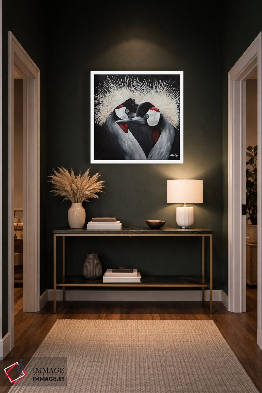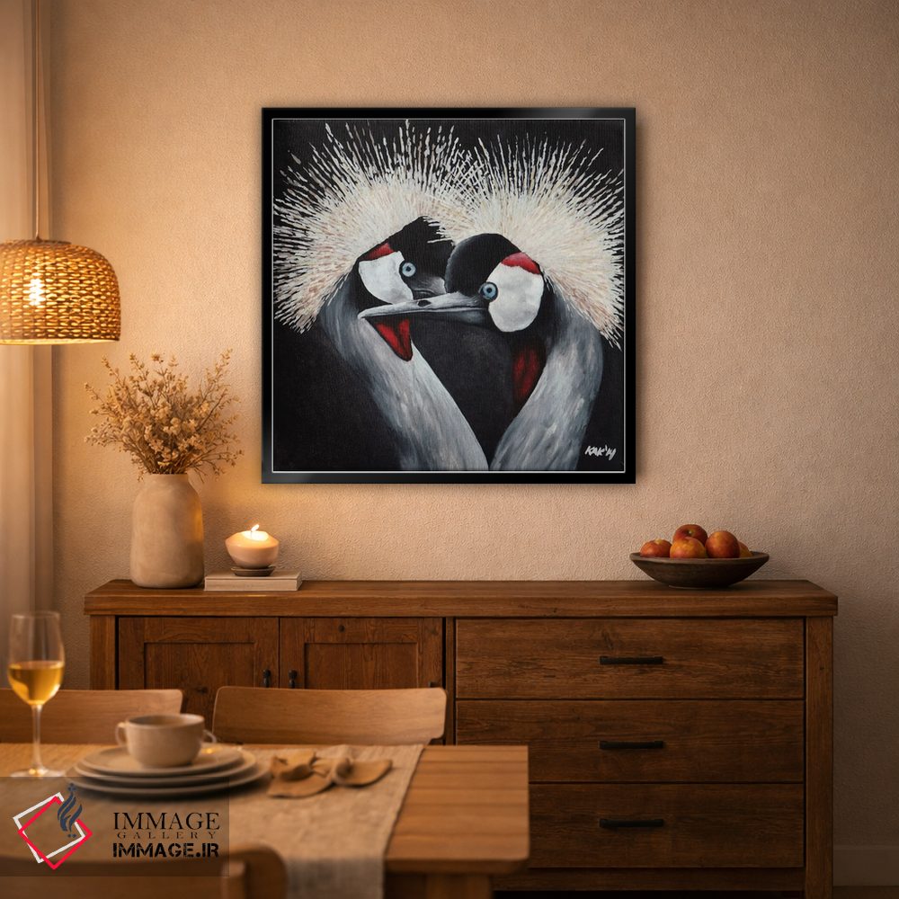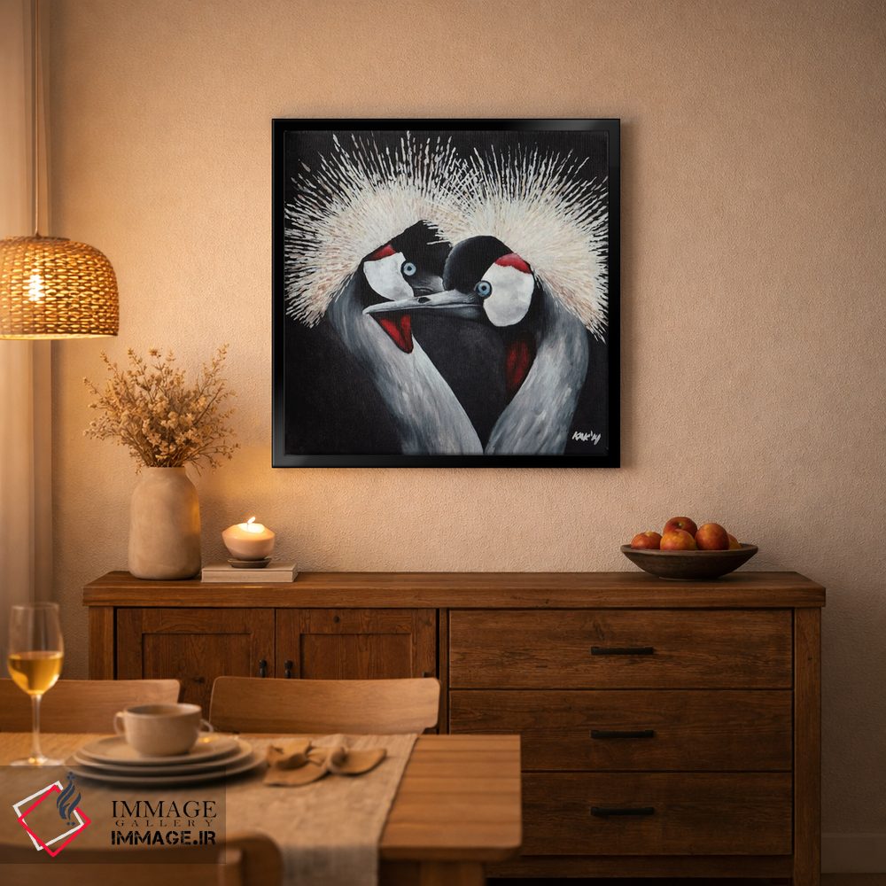 در «درنای تاجدار» اثرِ «هنر و طراحی KAK (استودیو هنری)»، حضور حیوانات فضا را صمیمیتر و دعوتکنندهتر نشان میدهد؛ برای دکورهای مدرن و مینیمال انتخابی خوشسلیقه است. در کنار گیاهان و نور طبیعی، جذابتر هم میشود.