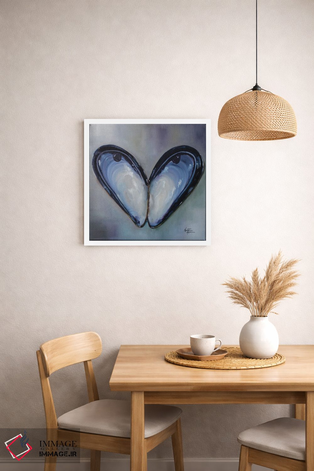 برای اتاقی که به یک عنصر دوستداشتنی نیاز دارد، «صدف سیاه (ماسِل)» اثرِ «کریستین کاینر» حس طبیعت را بیدغدغه وارد خانه میکند؛ برای فضاهای روستیک یا بوهو انتخابی خوشسلیقه است. هم فضا را گرم میکند، هم شلوغش نمیکند.