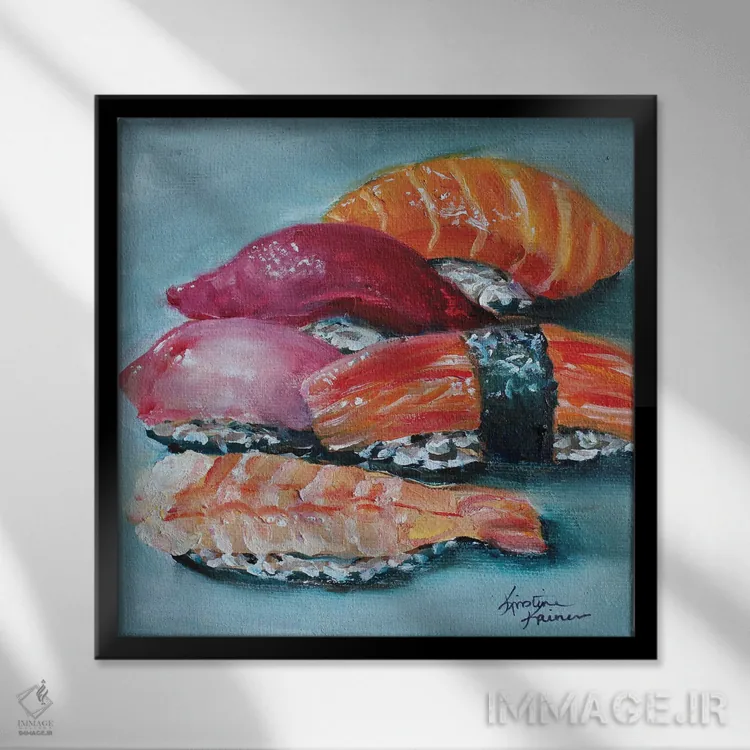 براساس پالت ترکیبی اثر، قاب تیک گرم (چوبی) پیشنهاد اول است و مشکی مات (فریم متوسط) مکمل. برای سفارشهای پروژهای با ابعاد و قابهای اختصاصی با ایماژ در تماس باشید.