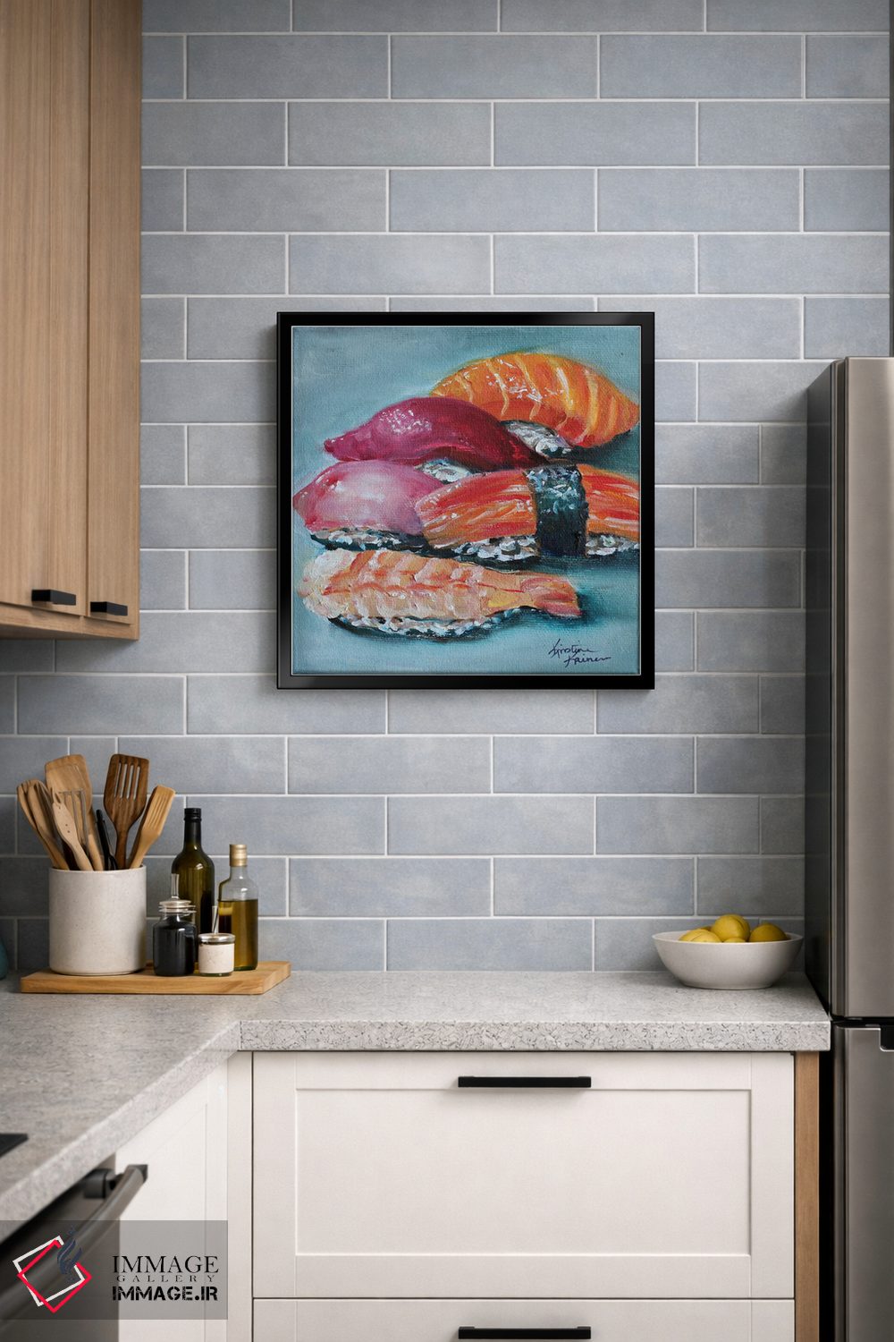 این تابلو با موضوعِ این دسته و اجرای هنری، یک انتخاب جذاب برای آشپزخانه یا فضای غذاخوری است اثرِ «کریستین کاینر».