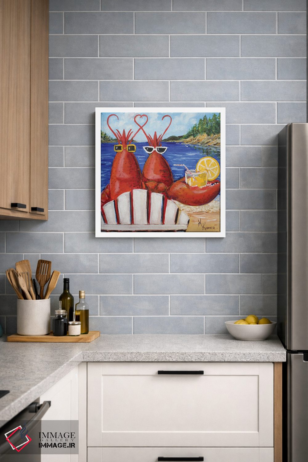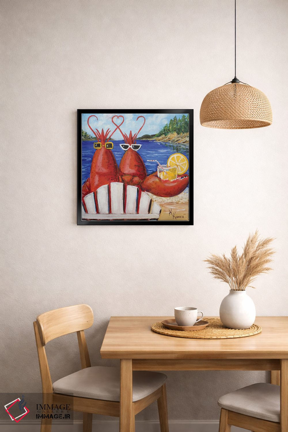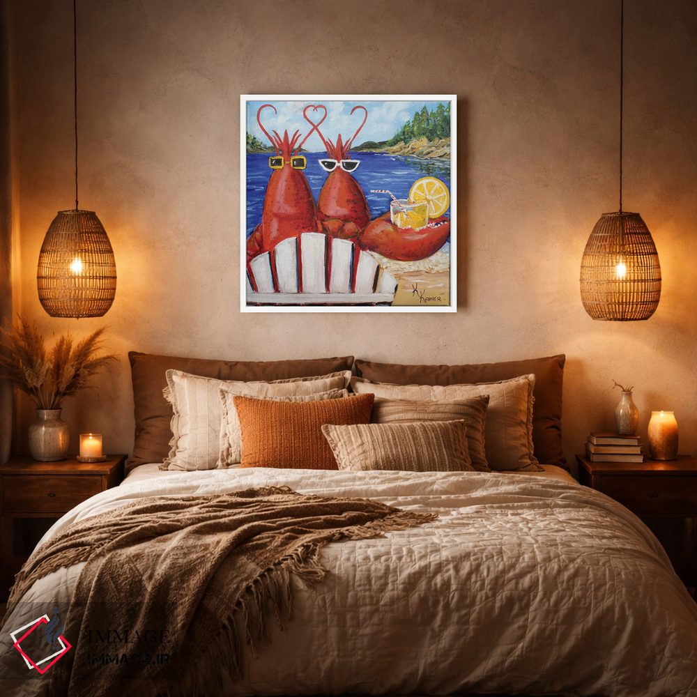 این اثر با عنوان «خرچنگهای مین محبوب من (ایالت مین آمریکا)» اثرِ «کریستین کاینر» بدون کودکانه شدن، بازیگوش و خوشپرداخت میماند؛ برای فضاهای روستیک یا بوهو انتخابی خوشسلیقه است. هم فضا را گرم میکند، هم شلوغش نمیکند.