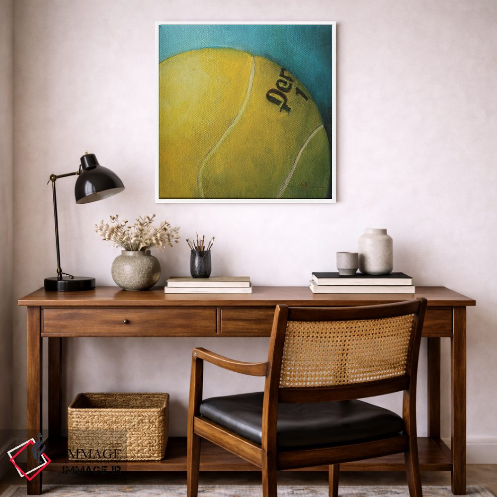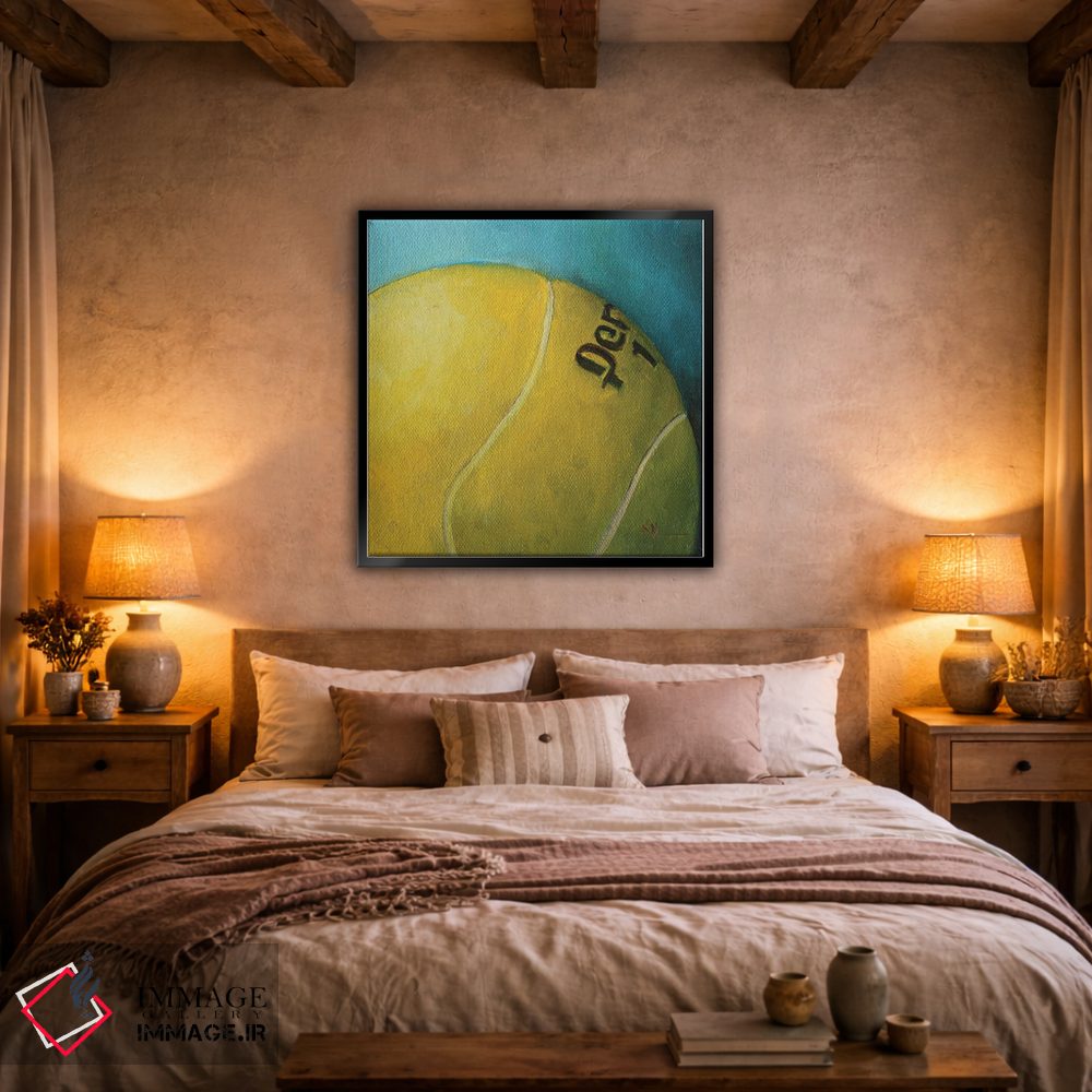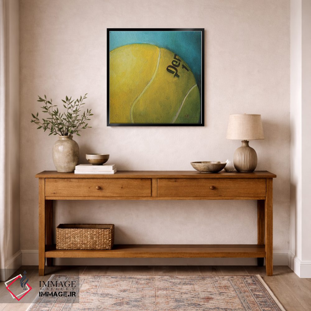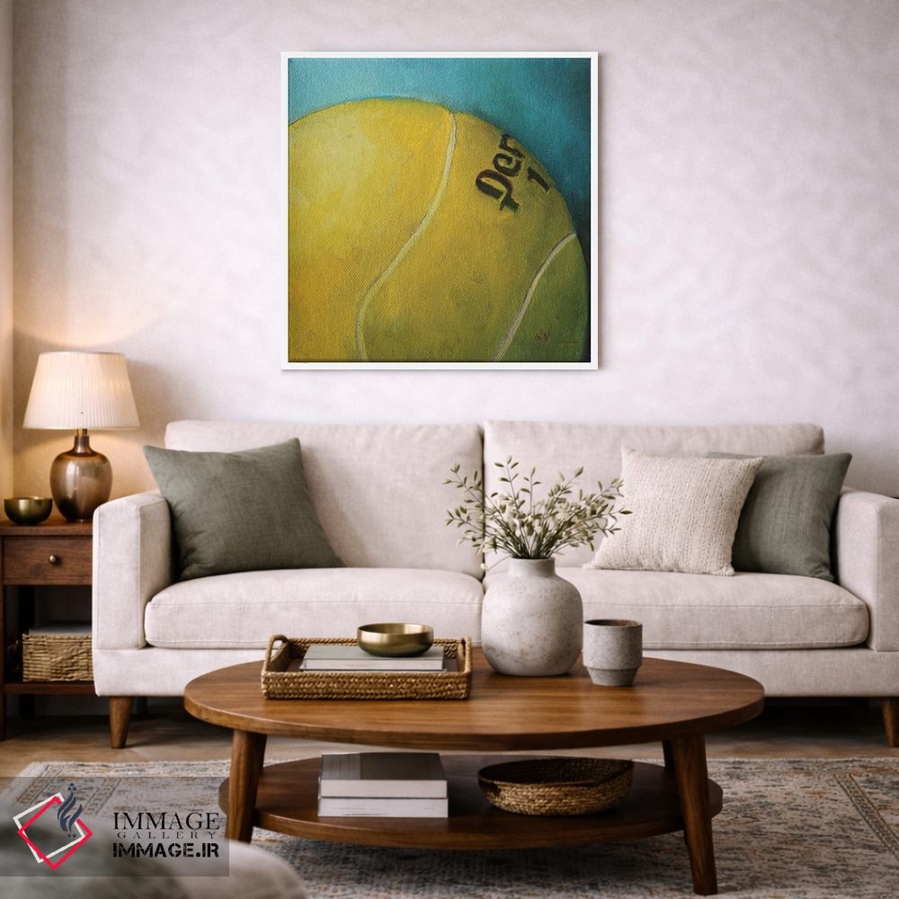 «توپ تنیس» اثرِ «کریستین کاینر» به فضا عمق میدهد؛ این اثر در اجرای هنری، برای دکورهای کلاسیک—مدرن یک نقطهی کانونی تمیز میسازد.
