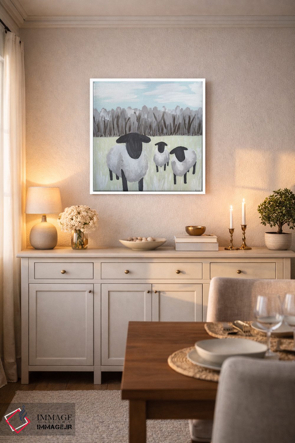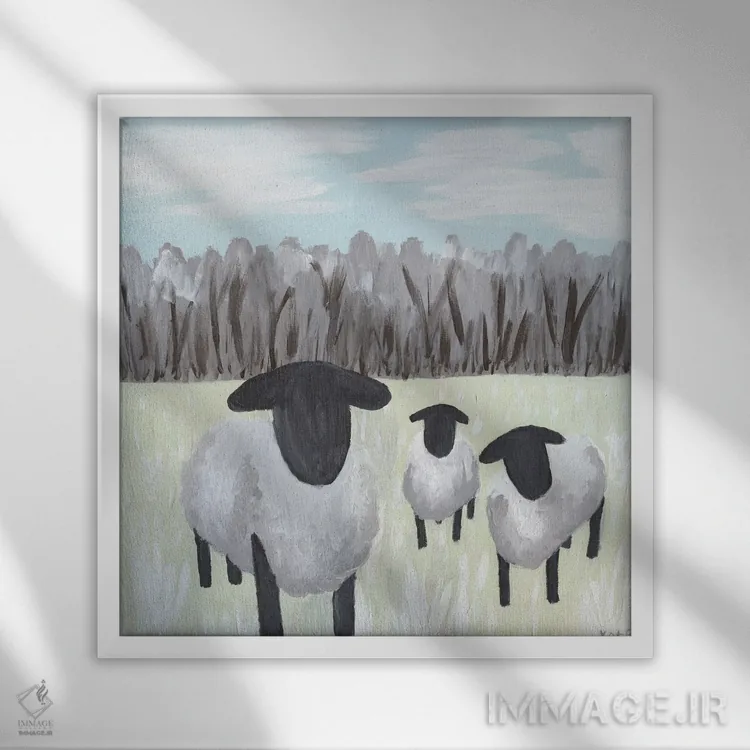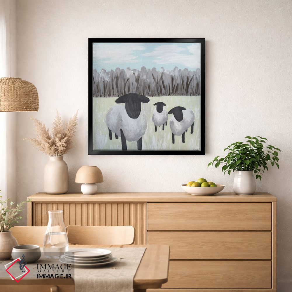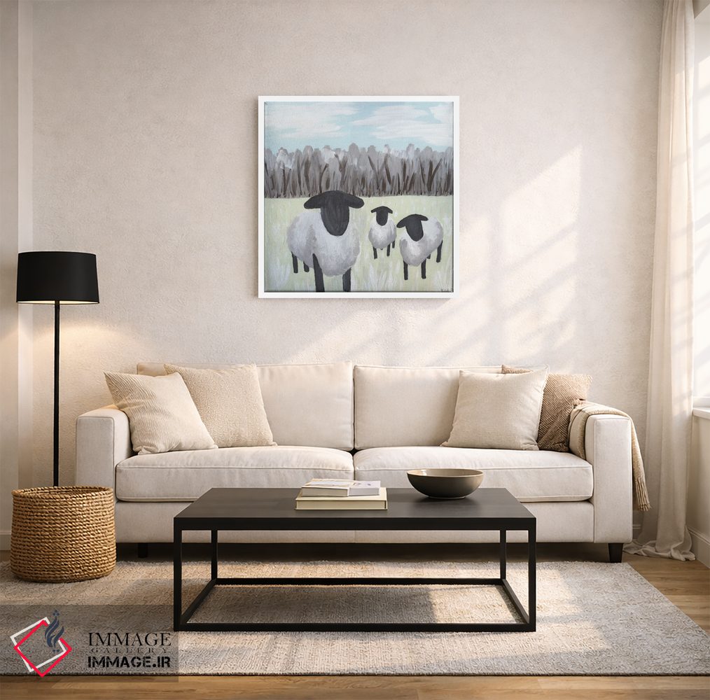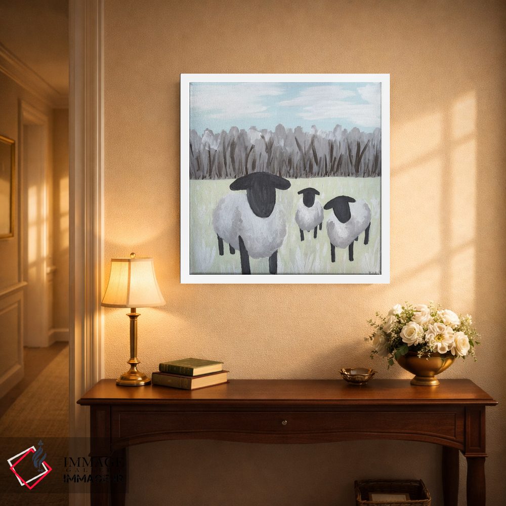 اگر میخواهید دیوار کمی سرزندگیِ محترمانه داشته باشد، «گوسفند با لکههای رنگ» اثرِ «کاتلین برایان» بدون کودکانه شدن، بازیگوش و خوشپرداخت میماند، برای راهروها و ورودیهای گرم گزینهٔ مناسبیست. حسش صمیمی است، اما کیفیتش جدی و خوشپرداخت.
