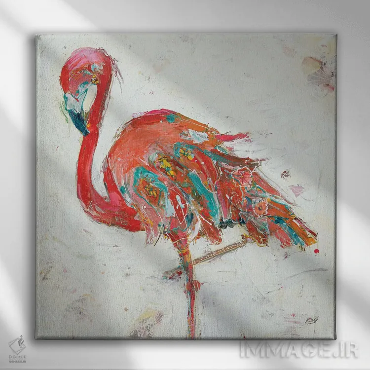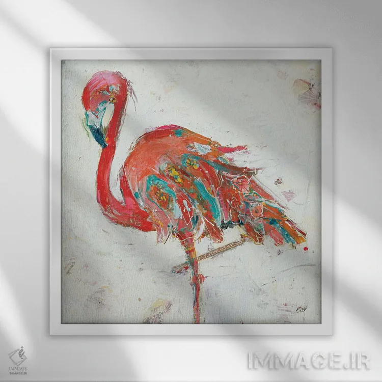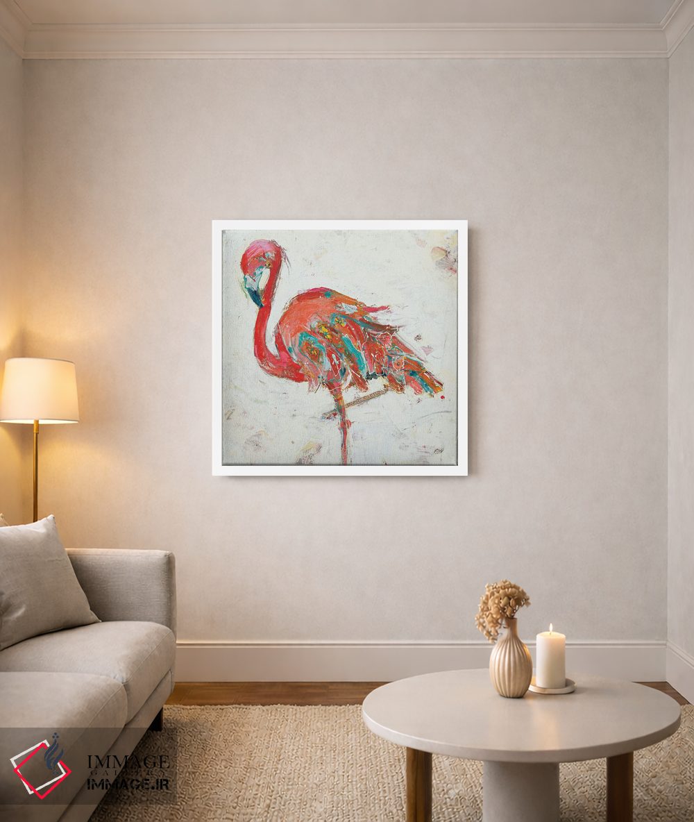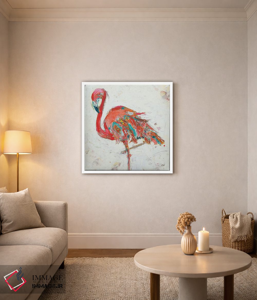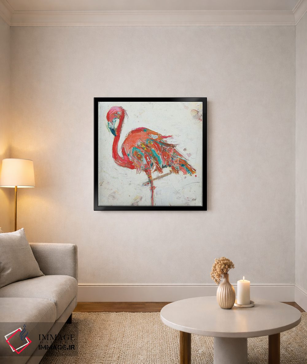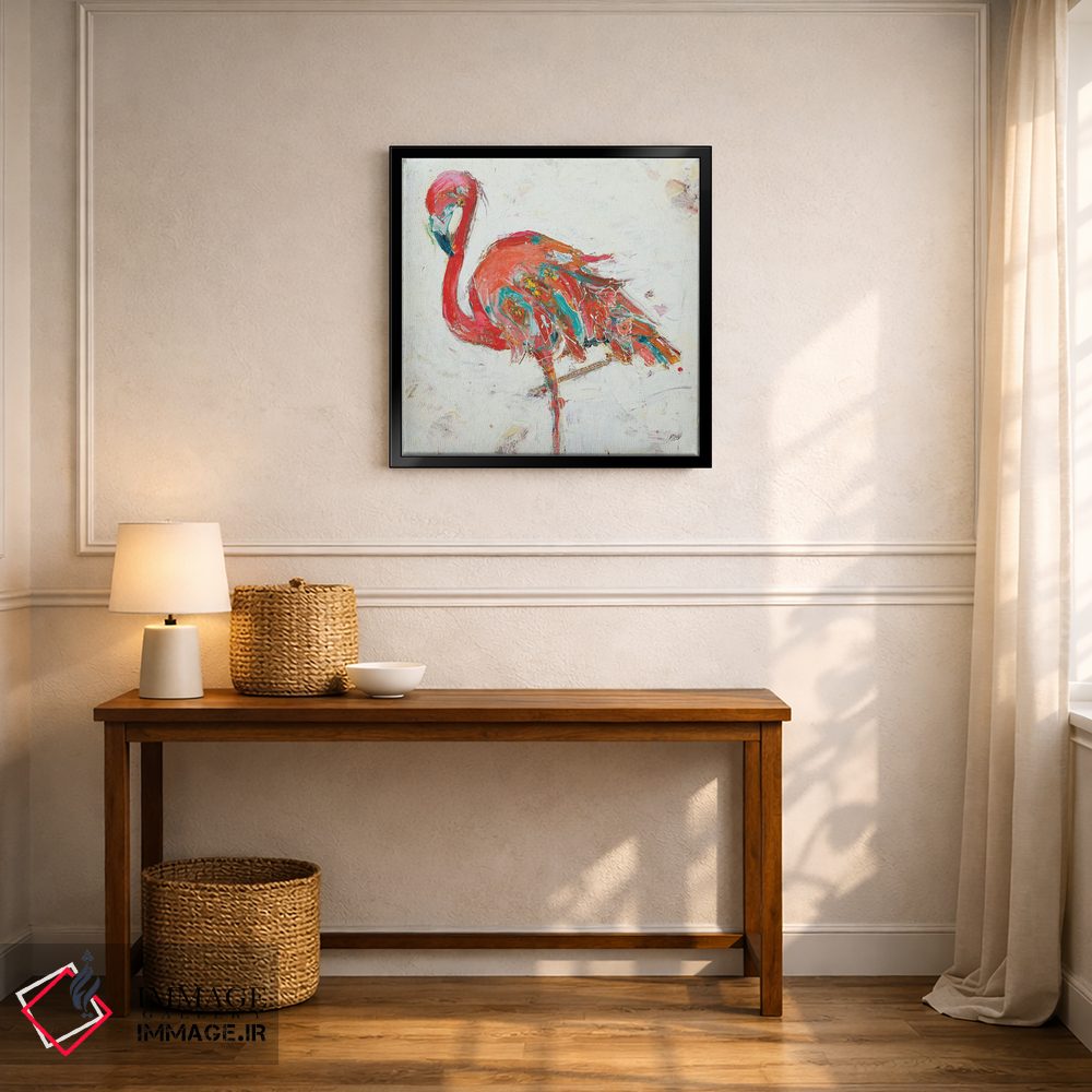 برای دیوارهای ساده، «فلامینگو روی زمینه سفید» اثرِ «کِلی دی» گرما و شخصیت به فضا اضافه میکند؛ برای فضاهای روستیک یا بوهو انتخابی خوشسلیقه است. هم فضا را گرم میکند، هم شلوغش نمیکند.