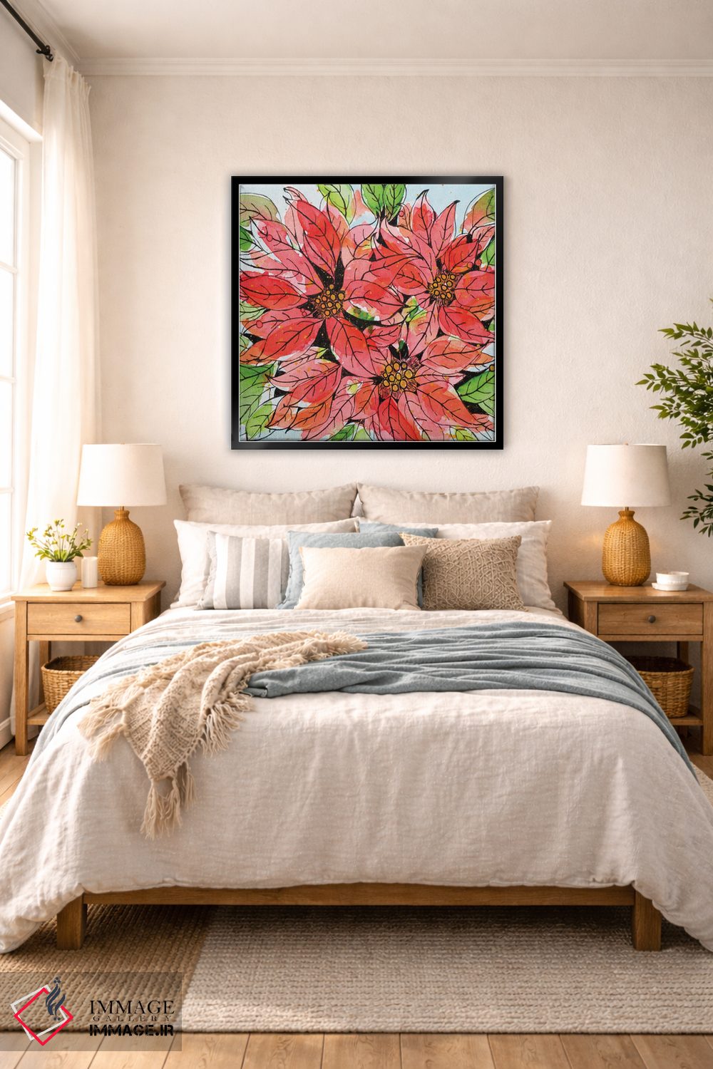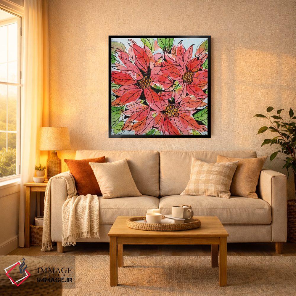 در «کوکب کریسمسی پرطراوت ۱ (پوانستیا)» اثرِ «کرینلاکس»، گلها و گیاهان تعادل رنگیِ لطیفی به چیدمان میدهد؛ برای دکورهای اسکانباوراوی انتخابی خوشسلیقه است. حضورش آرام است، اما بیاثر نیست.