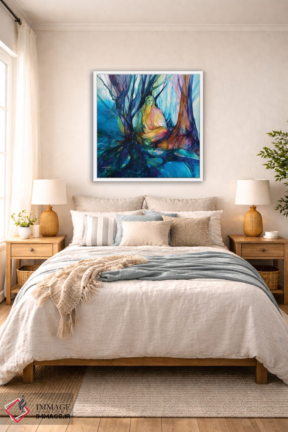 براساس پالت ترکیبی اثر، قاب تیک گرم (چوبی) پیشنهاد اول است و مشکی مات (فریم متوسط) مکمل. برای سفارشهای پروژهای با ابعاد و قابهای اختصاصی با ایماژ در تماس باشید.