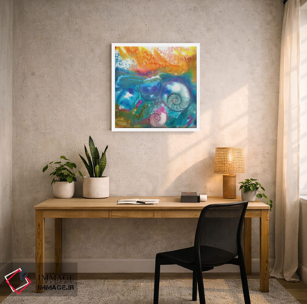 براساس پالت ترکیبی اثر، قاب تیک گرم (چوبی) پیشنهاد اول است و مشکی مات (فریم متوسط) مکمل. برای سفارشهای پروژهای با ابعاد و قابهای اختصاصی با ایماژ در تماس باشید.