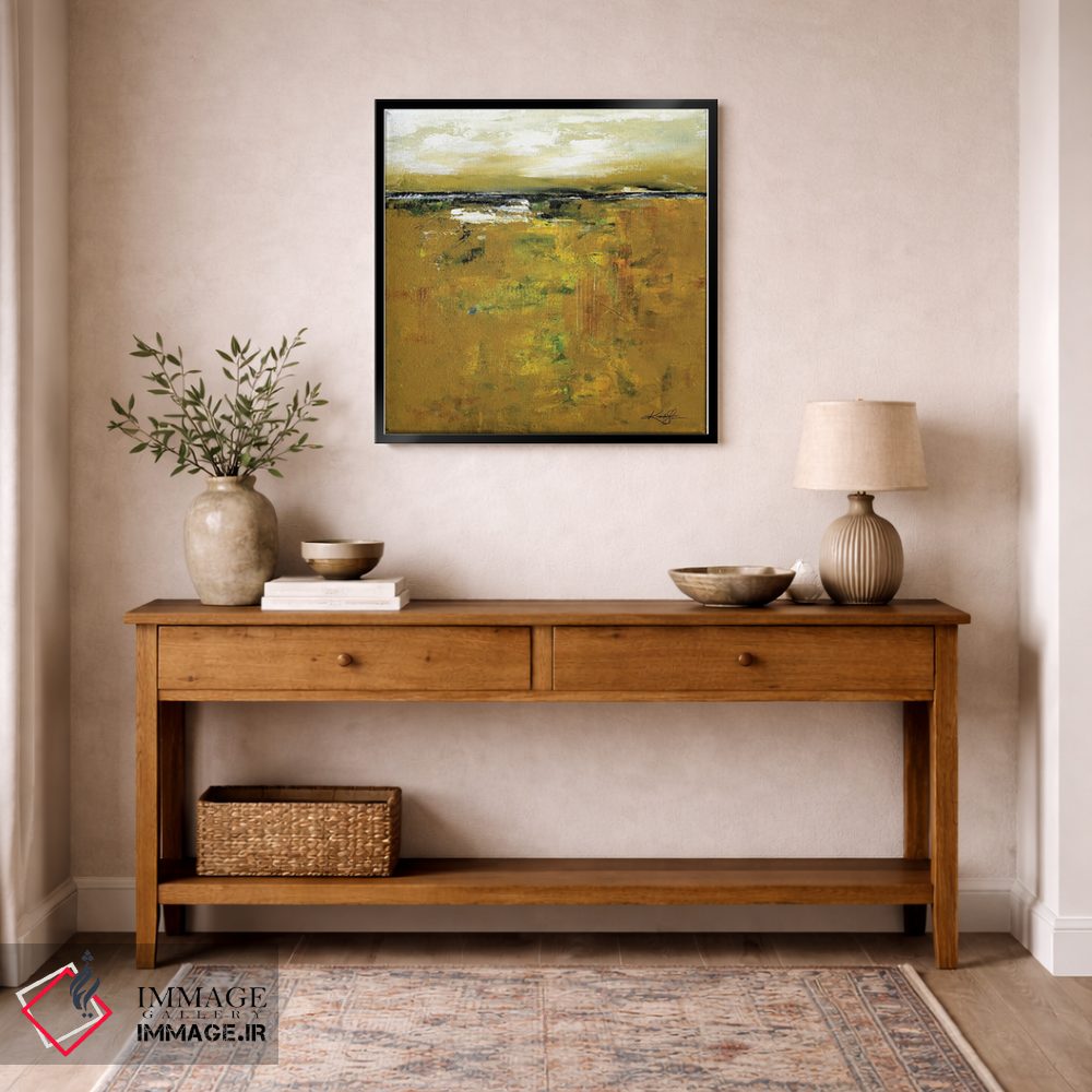 اگر میخواهید اثر برجستهتر شود، زرد را در یک تابلو کوچک مکمل کم و دقیق اضافه کنید تا فضا یکدستتر شود. انتخاب قاب هم میتواند این اکسنت را تقویت کند.