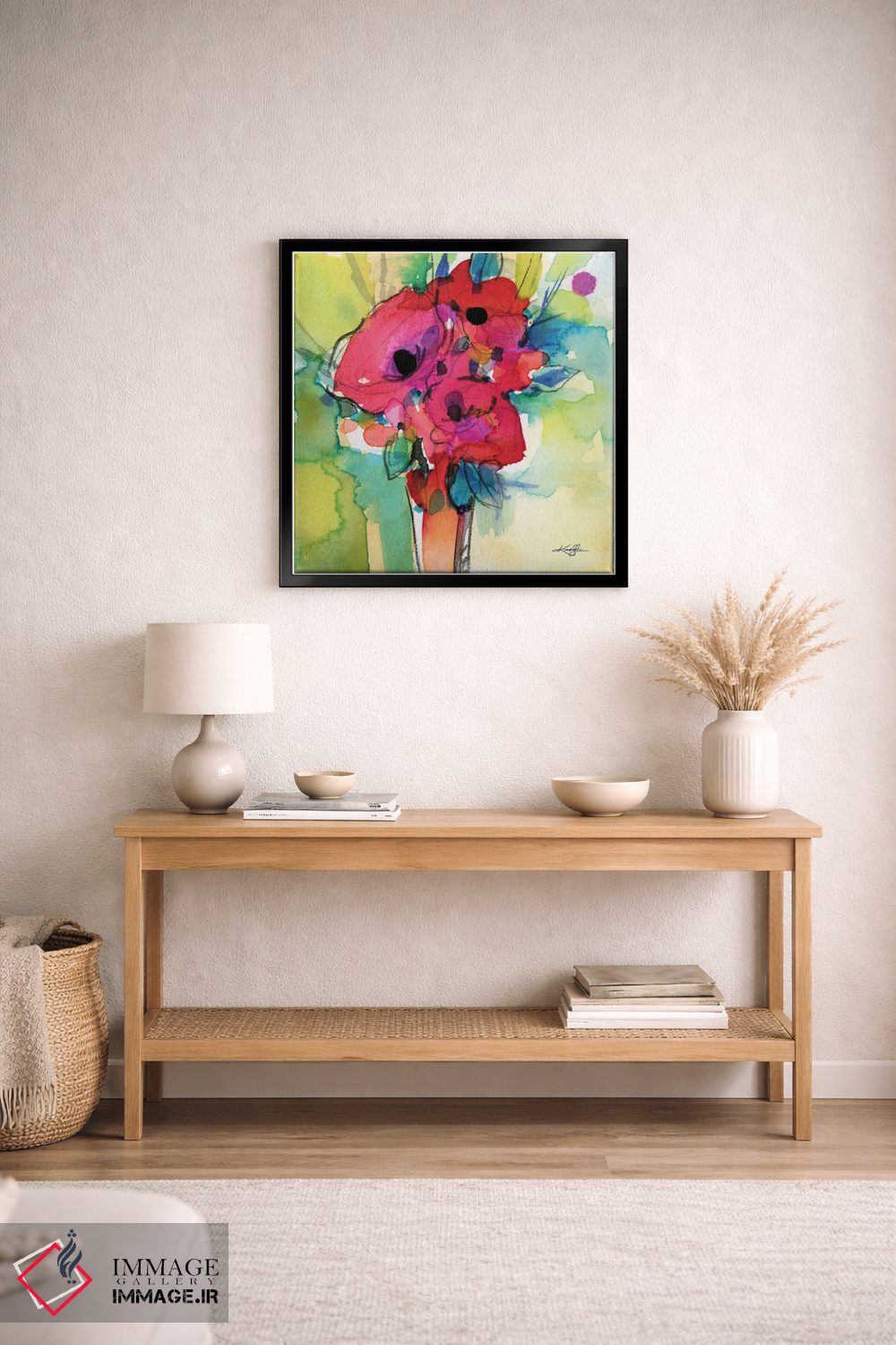 براساس پالت ترکیبی اثر، قاب تیک گرم (چوبی) پیشنهاد اول است و مشکی مات (فریم متوسط) مکمل. برای سفارشهای پروژهای با ابعاد و قابهای اختصاصی با ایماژ در تماس باشید.